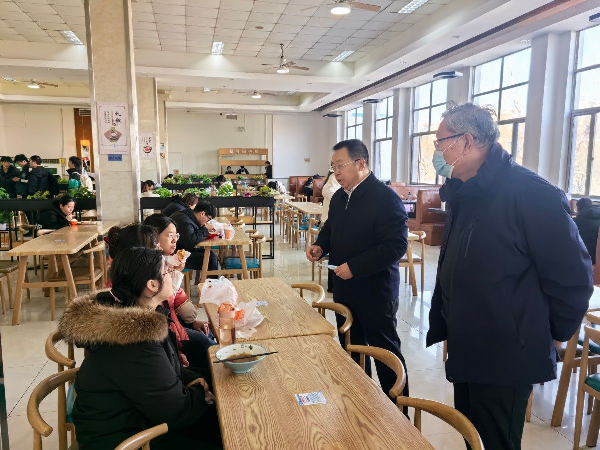 12月27日中午,校長(zhǎng)劉宗明、副校長(zhǎng)張勇帶領(lǐng)檢查組以“四不兩直”形式到舜耕校區(qū)檢查食堂工作,并與學(xué)生共進(jìn)午餐。
