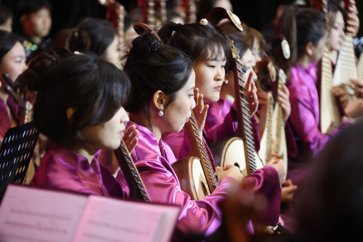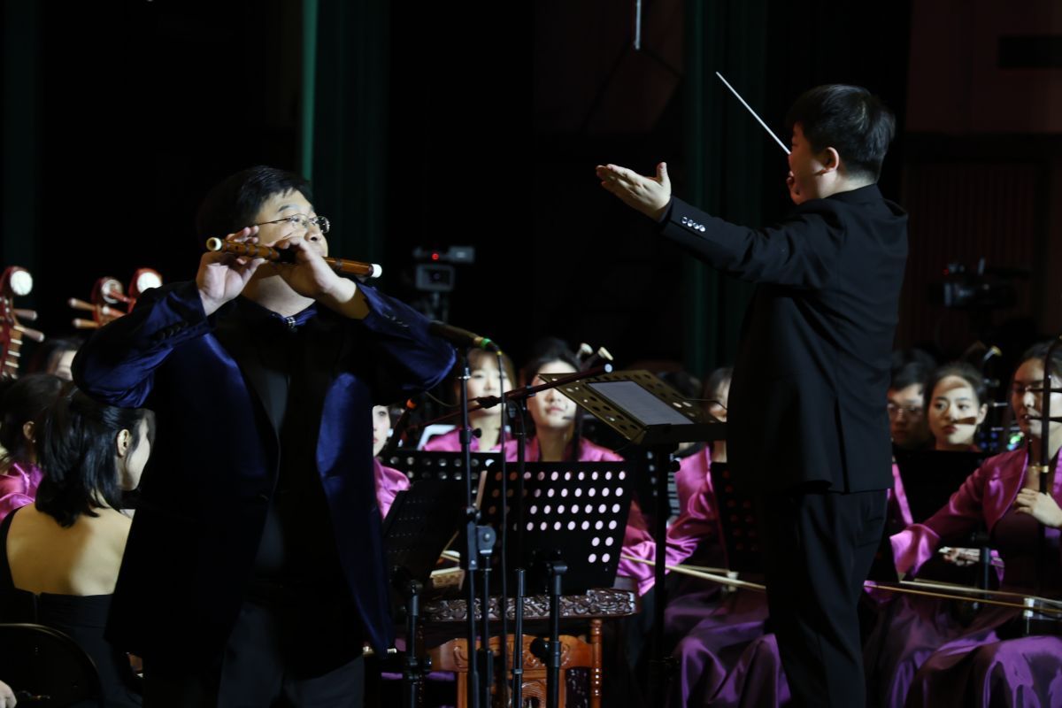 熱烈歡騰、盡顯節(jié)日氛圍的《春節(jié)序曲》將觀眾帶入晚會的下半場。下半場由濟南大學(xué)音樂學(xué)院山東泉城民族交響樂團演奏?!冬幾逦枨贰豆?jié)日的拉薩》豐富、生動地展現(xiàn)了能歌善舞的瑤族、藏族人民歡度節(jié)日的喜慶場面;源自文學(xué)經(jīng)典《紅樓夢》的組曲之一《紅樓夢主題音樂一一序曲》,帶有濃厚的傳統(tǒng)音樂特點,引領(lǐng)觀眾回味經(jīng)典;《沂河歡歌》以歡快的節(jié)奏和明朗的旋律,展現(xiàn)出沂河兩岸人民的幸福生活和對美好未來的向往;著名民歌《北京喜訊到邊寨》以歡快旋律傳達首都喜訊,為邊遠地區(qū)的寨民帶來歡樂;富含詩意、滿懷希望的歌曲《向往》,表達了人們對美好生活的追求。晚會在全場合唱《我和我的祖國》中落下帷幕。
