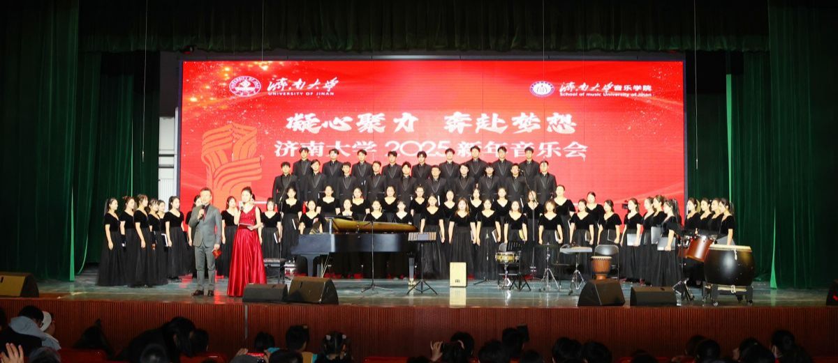 華章奏響,樂啟新歲。12月27日晚,濟南大學(xué)“凝心聚力 奔赴夢想”2025新年音樂會在濟南大學(xué)禮堂舉行。學(xué)校領(lǐng)導(dǎo)與500余名師生校友和社會各界群眾觀看晚會。