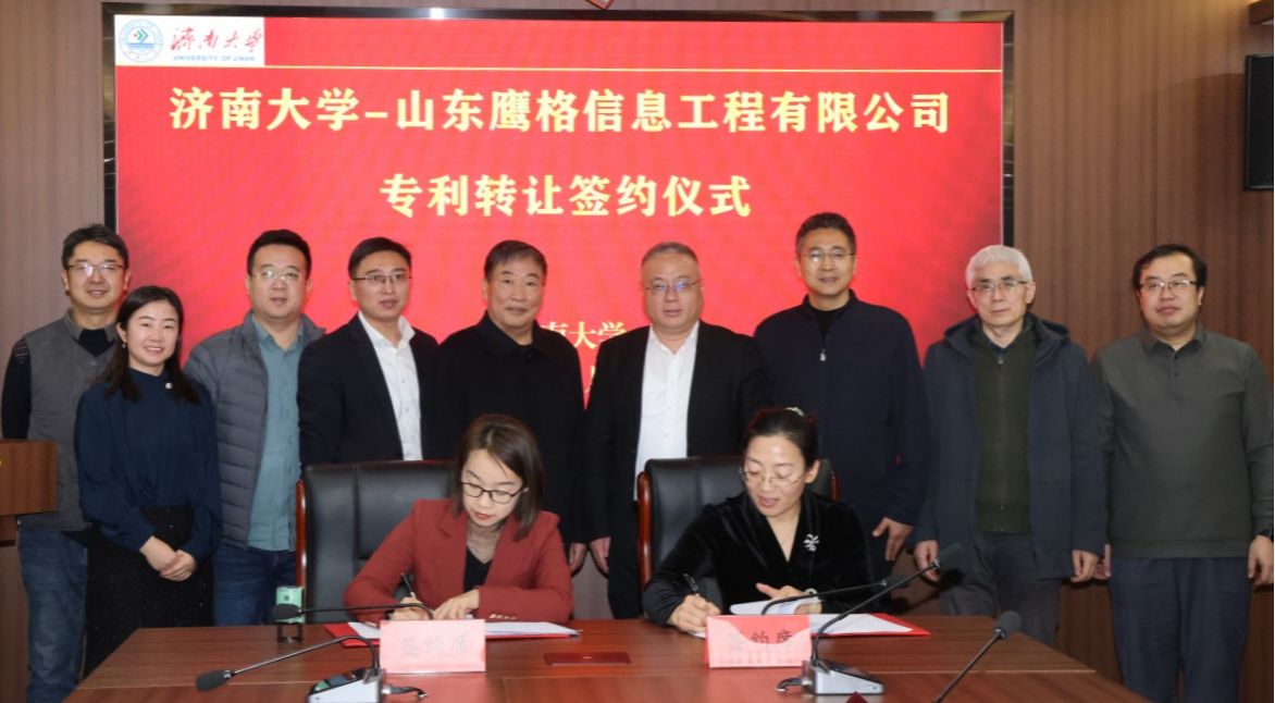 12月27日,濟南大學與山東鷹格信息工程有限公司高價值專利技術轉讓簽約儀式在我校舉行。學校黨委常委、副校長黃加棟,山東鷹格信息工程有限公司創(chuàng)始人、董事長卞介堂,總經(jīng)理馮金霞出席儀式,學??萍继?、信息科學與工程學院相關負責人、信息科學與工程學院李金屏教授、山東鷹格信息工程有限公司相關人員參加活動。簽約儀式由科技處處長顏梅主持。