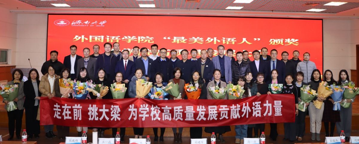 1月7日下午,外國語學院“最美外語人”頒獎典禮暨學院高質(zhì)量發(fā)展大會在第二學術(shù)報告廳舉辦。學校黨委副書記商華,濟南大學特聘教授、上海交通大學外國語學院教授劉建軍,黨委學生工作部(處)、教務(wù)處、社科處、黨委研究生工作部、合作發(fā)展處等部門負責人,學院領(lǐng)導班子、學院全體教師和學生代表參加活動。大會由外國語學院副院長王勇主持。