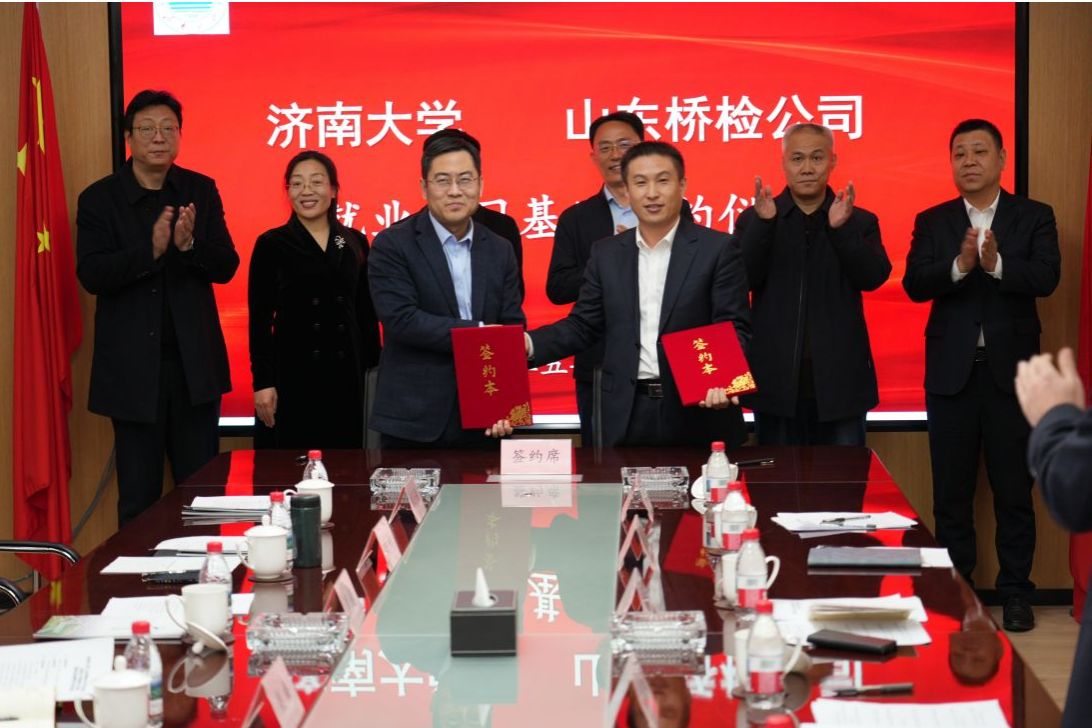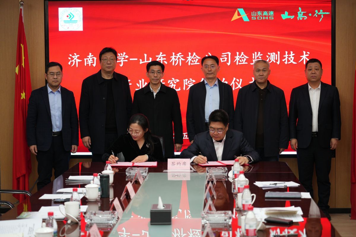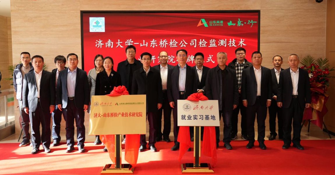 2月13日下午,濟南大學(xué)與山東省公路橋梁檢測中心有限公司共建的“檢監(jiān)測技術(shù)產(chǎn)業(yè)研究院”與“濟南大學(xué)就業(yè)實習(xí)基地”揭牌儀式在山東高速工程咨詢集團有限公司舉行。濟南大學(xué)黨委常委、副校長李強,山東高速集團黨委常委、副總經(jīng)理李懷峰,山東高速工程咨詢集團有限公司黨委書記、董事長張平,山東省交通運輸廳工程建設(shè)事務(wù)中心質(zhì)量部部長孫吉勇,山東省公路橋梁檢測中心有限公司黨支部書記、董事長高慶水出席儀式。學(xué)校科技處、土木建筑學(xué)院以及企業(yè)相關(guān)部門負責(zé)人參加活動。儀式由山東高速工程咨詢集團有限公司黨委委員、副總經(jīng)理單煜輝主持。