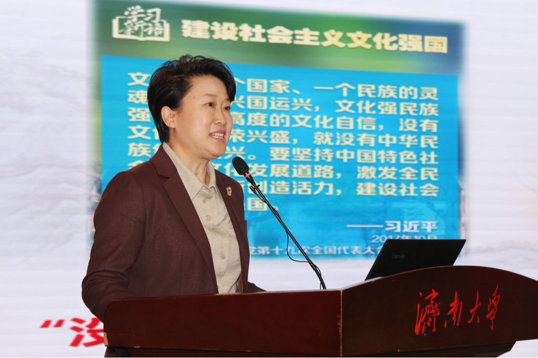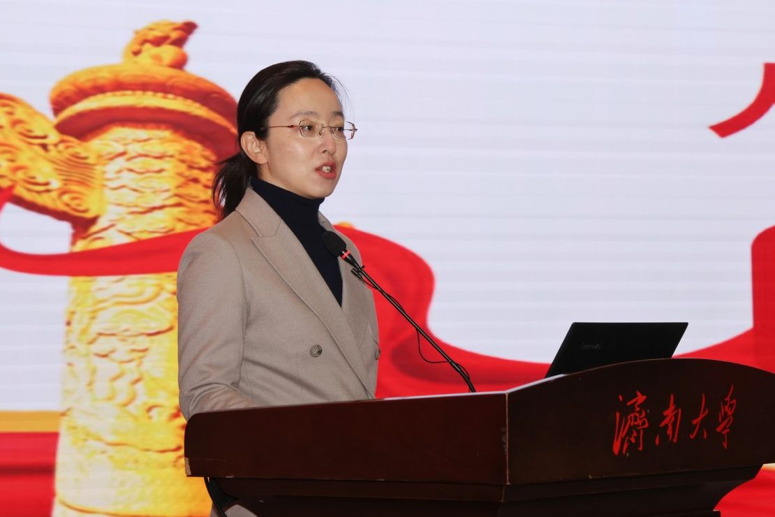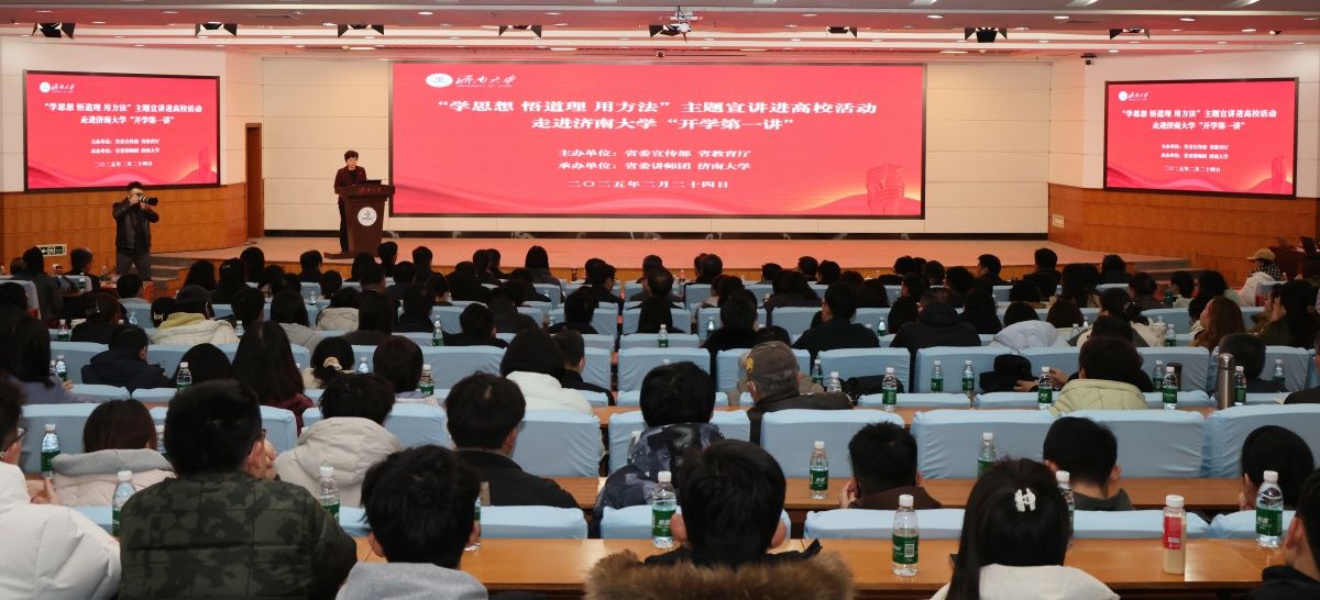 2月24日上午,由省委宣傳部、省教育廳聯(lián)合主辦的“學思想 悟道理 用方法”主題宣講進高?;顒尤鎲樱跐洗髮W舉辦“開學第一講”。省委宣傳部副部長、一級巡視員魏長民,省委講師團團長閆軍,省教育廳總督學王志剛,濟南大學黨委書記劉春華,黨委副書記商華,黨委常委、副校長李強,省委宣傳部、省教育廳有關(guān)處室負責人以及濟南大學師生代表300余人參加活動。宣講活動由劉春華主持。