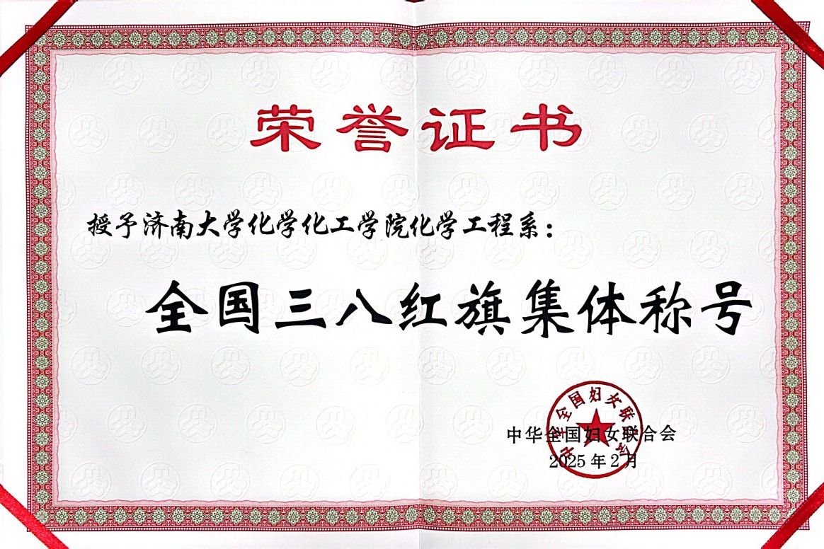 2月28日,全國婦聯(lián)在京舉行紀(jì)念“三八”國際婦女節(jié)暨表彰大會,隆重表彰2024年度全國三八紅旗手、全國三八紅旗集體、全國巾幗文明崗。山東省21名個(gè)人、41個(gè)單位光榮上榜。我?;瘜W(xué)化工學(xué)院化學(xué)工程系作為山東省屬高校唯一獲得2024年度“全國三八紅旗集體”稱號的集體榮登榜單。