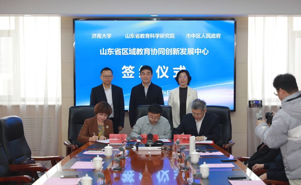 王霞在講話中指出,三方共建協(xié)同創(chuàng)新發(fā)展中心,是破解教育發(fā)展不平衡不充分問題的關(guān)鍵抓手,是貫通教育人才培養(yǎng)全鏈條的創(chuàng)新探索,是服務(wù)教育強(qiáng)省建設(shè)的主動(dòng)擔(dān)當(dāng)。濟(jì)南大學(xué)作為山東省人民政府和教育部共建的綜合性大學(xué)、山東省重點(diǎn)建設(shè)大學(xué)、山東省高水平大學(xué)“沖一流”建設(shè)高校,師范教育辦學(xué)歷史悠久、人才培養(yǎng)質(zhì)量?jī)?yōu)良、服務(wù)區(qū)域成效顯著。下一步,學(xué)校將嚴(yán)格履行協(xié)議,通過實(shí)施“師范教育賦能”“科研攻關(guān)賦能”“師資建設(shè)賦能”三大賦能行動(dòng),打造教育協(xié)同創(chuàng)新的“濟(jì)南模式”,助力各方合作共贏。