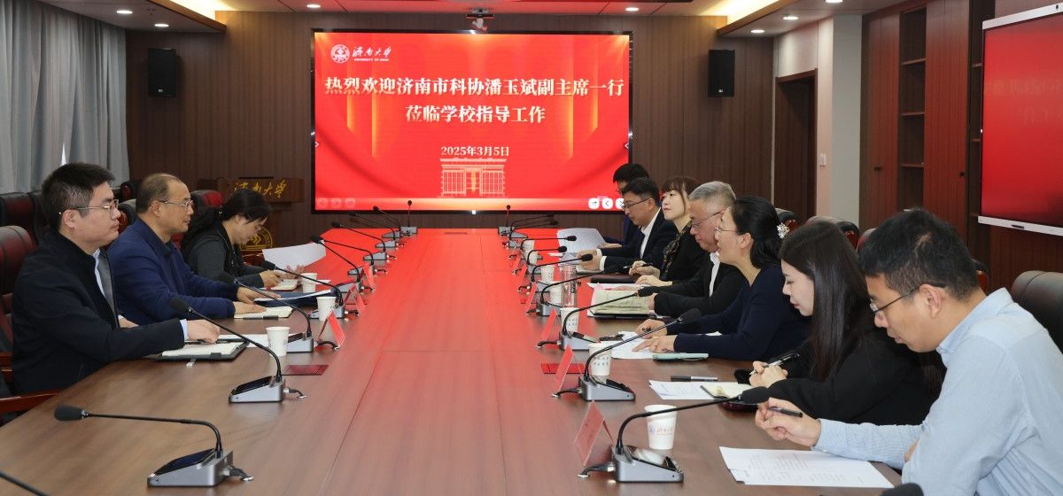 黃加棟對(duì)潘玉斌一行的來(lái)訪(fǎng)表示歡迎,并對(duì)濟(jì)南市科協(xié)長(zhǎng)期以來(lái)關(guān)心支持濟(jì)南大學(xué)的發(fā)展表示感謝。他介紹了學(xué)校在科技創(chuàng)新、海外人才引育、國(guó)際合作交流、青年科技人才培養(yǎng)以及校地海外人才引育聯(lián)合體等方面的工作進(jìn)展。他指出,濟(jì)南大學(xué)在科技創(chuàng)新及科技合作方面取得了良好成效,這與科技人才隊(duì)伍的不斷發(fā)展壯大密不可分,學(xué)校正積極拓寬國(guó)際合作渠道,已與多所全球知名學(xué)府及研究機(jī)構(gòu)建立了穩(wěn)固且持久的合作關(guān)系,并通過(guò)多種舉措吸引海外優(yōu)秀人才加盟。學(xué)校將在市科協(xié)的指導(dǎo)與支持下,繼續(xù)加大在科技合作、海外人才引育以及青年科技人才培養(yǎng)等方面的工作力度,搭建更加堅(jiān)實(shí)的橋梁,共同為濟(jì)南市的科技創(chuàng)新和經(jīng)濟(jì)社會(huì)發(fā)展貢獻(xiàn)更大力量。