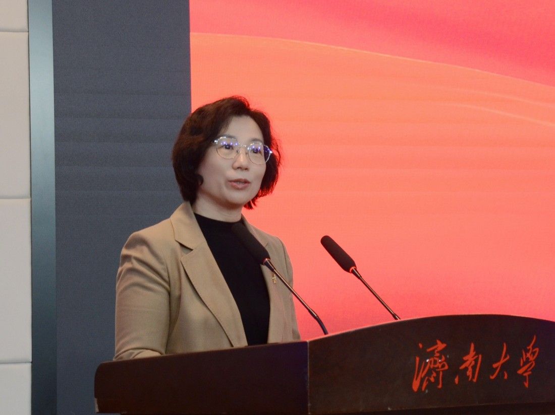 王霞對(duì)本次活動(dòng)的舉辦表示熱烈的祝賀,向長(zhǎng)期以來(lái)關(guān)心支持濟(jì)南大學(xué)和附屬小學(xué)教育發(fā)展的領(lǐng)導(dǎo)和同仁表示衷心的感謝,并為學(xué)校未來(lái)的發(fā)展錨定了方向,寄予了深切厚望。她指出,本次教育教學(xué)成果展示活動(dòng),在回顧附屬小學(xué)五年發(fā)展歷程的同時(shí),展望以科技賦能基礎(chǔ)課程改革,以智慧引領(lǐng)教育理念轉(zhuǎn)變。通過(guò)活動(dòng)的舉辦,進(jìn)一步解放思想,更新觀念,推進(jìn)教師數(shù)智思維的系統(tǒng)培養(yǎng)和網(wǎng)絡(luò)施教能力的整體提升,為開(kāi)辟教育發(fā)展數(shù)字化新賽道,塑造教育發(fā)展新優(yōu)勢(shì)作出了積極探索和有益嘗試。展望新征程,希望附屬小學(xué)以更高站位、更寬視野、更大格局謀劃未來(lái)發(fā)展。