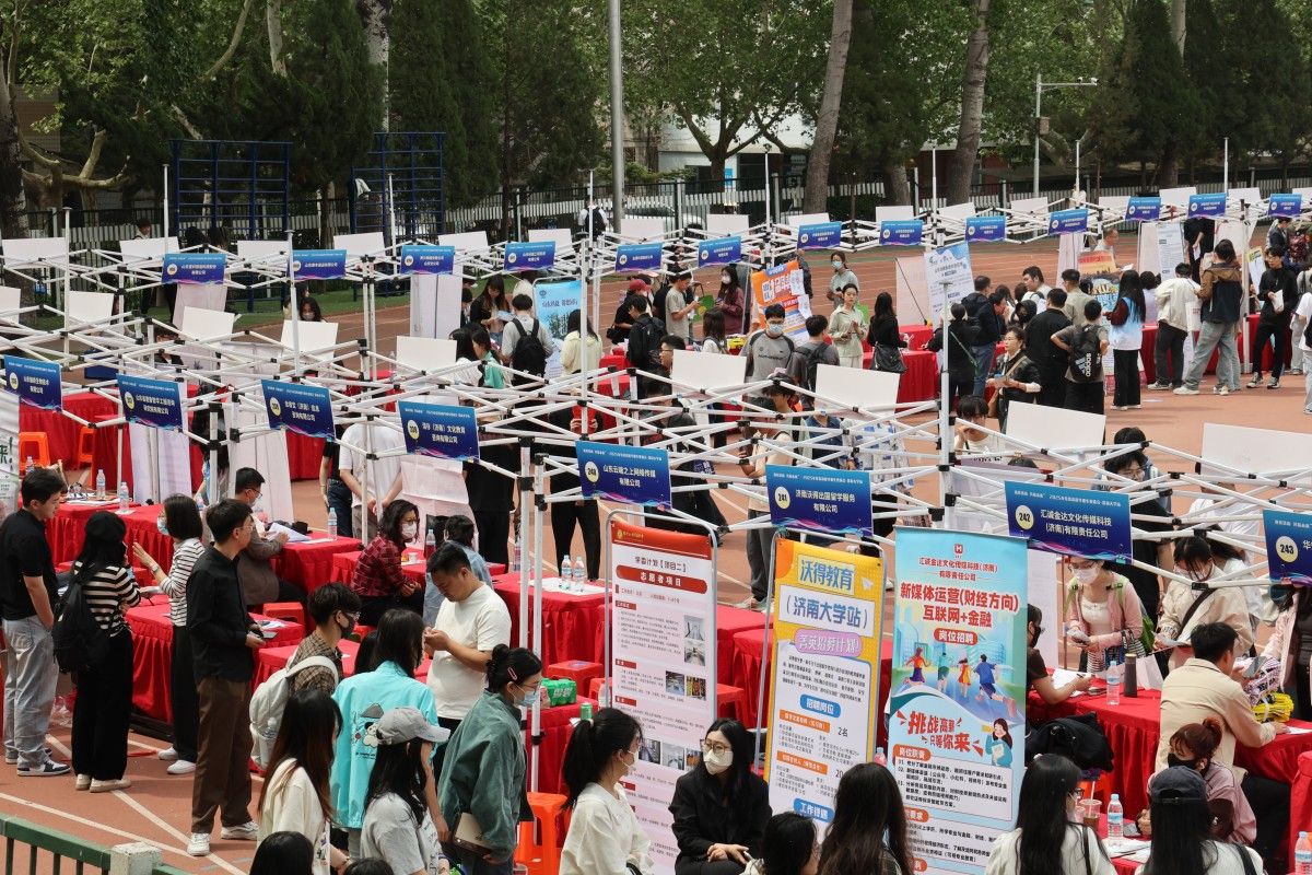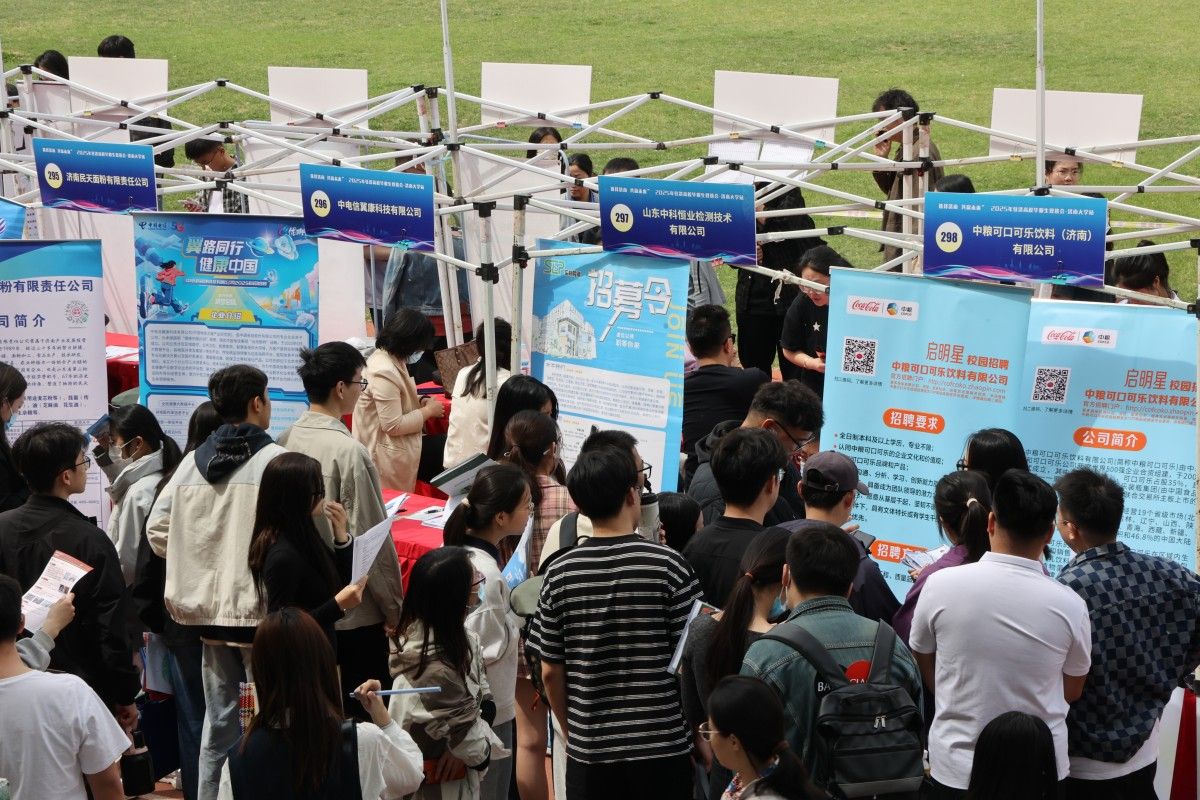 4月18日上午,由濟(jì)南市人力資源和社會(huì)保障局主辦,濟(jì)南大學(xué)承辦的“選擇濟(jì)南 共贏未來”2025年駐濟(jì)高校畢業(yè)生就業(yè)雙選會(huì)在濟(jì)南大學(xué)體育場舉辦。