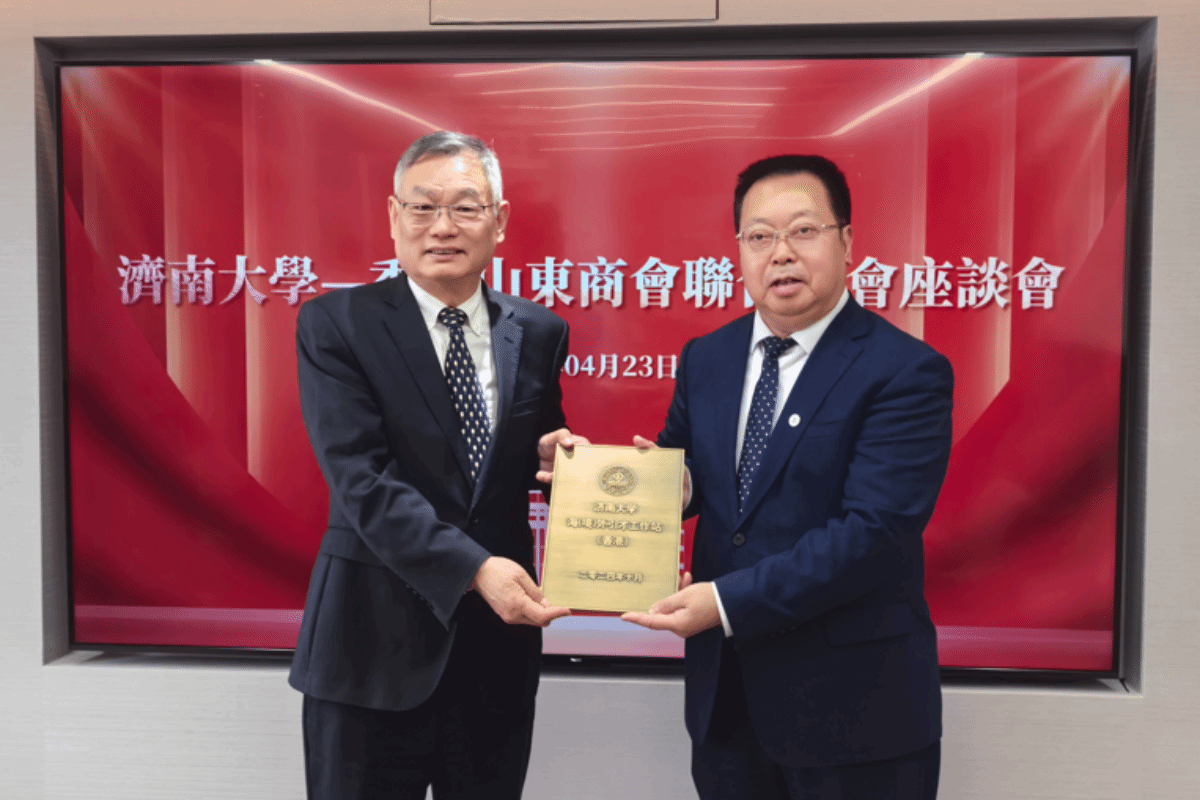 4月23日下午,代表團(tuán)訪問了香港山東商會聯(lián)合總會、冀魯旅港同鄉(xiāng)會以及校友企業(yè)香港正大集團(tuán)。劉宗明與香港山東商會聯(lián)合總會會長尹國橋共同為校友聯(lián)絡(luò)處揭牌,劉宗明為濟(jì)南大學(xué)境外人才工作驛站授牌并為尹國橋頒發(fā)客座教授聘書。代表團(tuán)一行與香港山東商會聯(lián)合總會舉行座談會,與會人員圍繞加強(qiáng)人才交流、推進(jìn)科技合作、建設(shè)研究平臺等話題進(jìn)行深入交流。