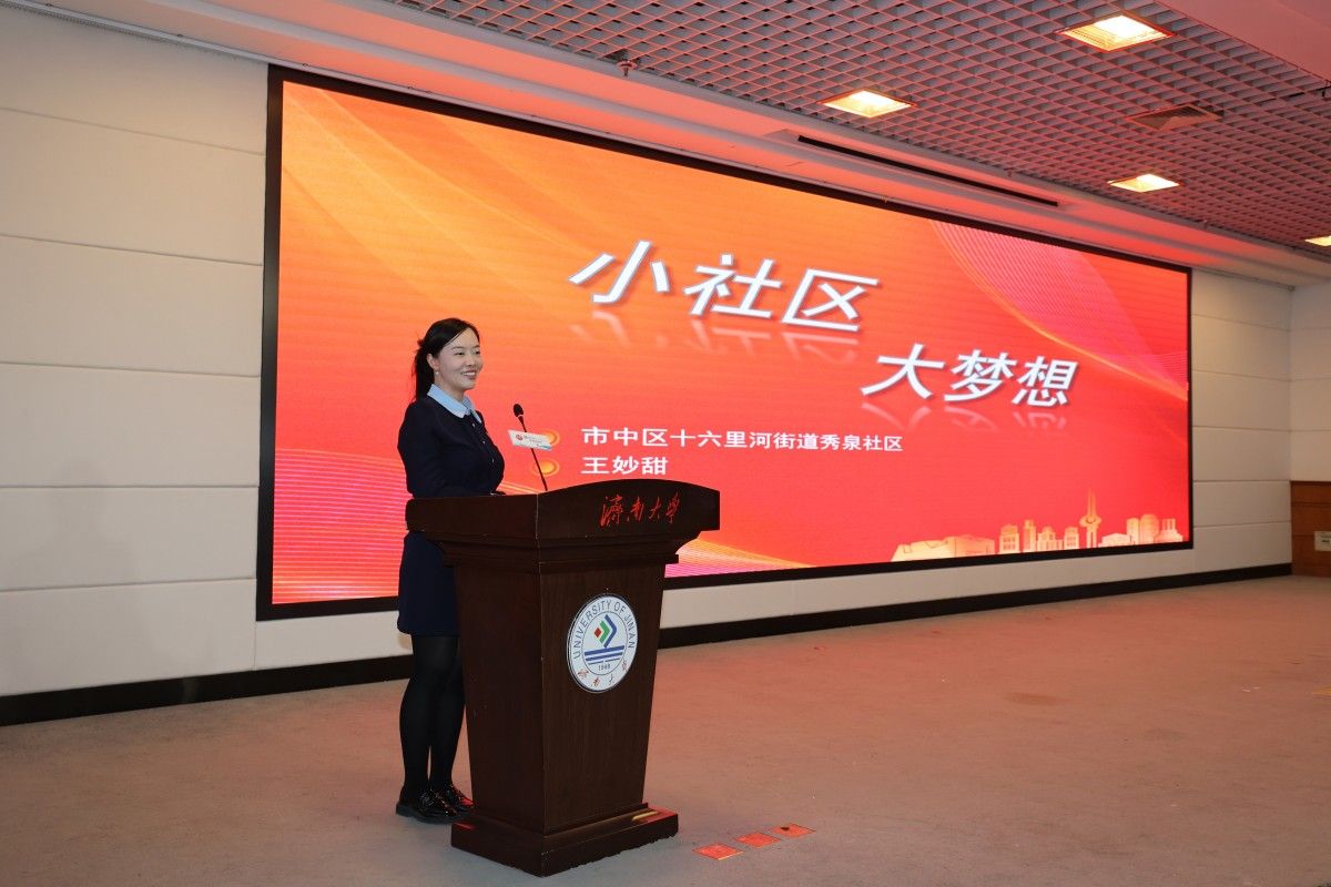 北京理工大學(xué)前沿技術(shù)研究院常務(wù)副院長陳雪梅以科研工作者視角,向濟(jì)大學(xué)子講述了北理工與濟(jì)南的“雙向奔赴”?!皾?jì)南是一座充滿機(jī)遇的城市,多層次的人才政策支撐體系、活力迸發(fā)的創(chuàng)新雨林生態(tài)和完備的產(chǎn)業(yè)鏈資源保障,為校地協(xié)同創(chuàng)新注入了強(qiáng)勁動(dòng)能。希望大家能把握機(jī)遇,在濟(jì)南這片沃土實(shí)現(xiàn)自己的人生價(jià)值。”濟(jì)南睿恒智元智能科技有限公司總經(jīng)理尹貽生,以“以光織夢智馭未來”為主題分享了自己在濟(jì)南求學(xué)、創(chuàng)業(yè)、生活的故事?!叭龘袢墙K不悔,求學(xué)創(chuàng)業(yè)筑新家,山泉伴行濟(jì)同路,創(chuàng)新潮涌共繁華”是他三次選擇濟(jì)南的真情告白?!叭绻f創(chuàng)業(yè)是場馬拉松,濟(jì)南的人才政策就是最好的‘補(bǔ)給站’。”山東北成環(huán)境工程有限公司董事長肖島深耕水處理行業(yè)20多年,他結(jié)合自己的親身經(jīng)歷,講述了濟(jì)南“雪中送炭”的創(chuàng)業(yè)扶持和“錦上添花”的賦能發(fā)展。市中區(qū)十六里河街道秀泉社區(qū)的“85后”黨委書記王妙甜在“小社區(qū)”成就“大作為”,她以自己17年扎根社區(qū)的工作經(jīng)歷,向大家傳遞了在濟(jì)南“干事有平臺(tái)、發(fā)展有空間、內(nèi)心有歸屬”的暖心溫度。濟(jì)南大學(xué)1995級(jí)校友、萬旭宏業(yè)集團(tuán)有限公司董事長彭震,分享了自己畢業(yè)留濟(jì)的創(chuàng)業(yè)歷程,他號(hào)召青年學(xué)生要做自己的“破壁人”,在追夢路上以勇氣為底牌,用堅(jiān)持做火把,把韌性當(dāng)鎧甲,書寫屬于自己的人生答卷。