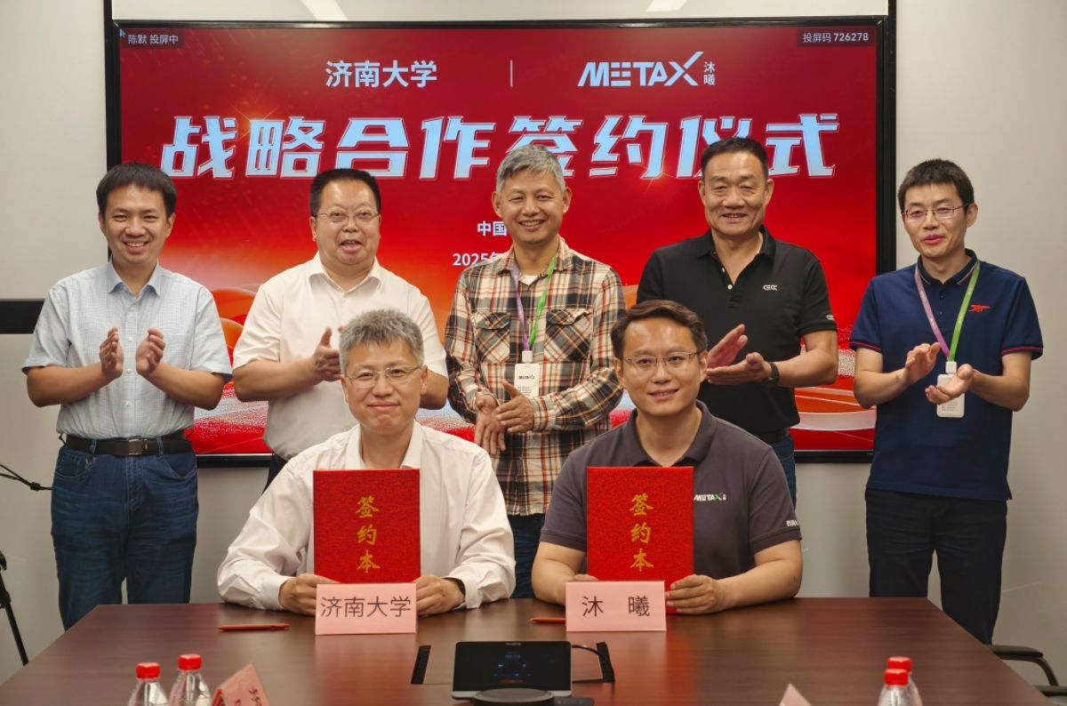 5月15日,濟(jì)南大學(xué)與沐曦集成電路(上海)股份有限公司(以下簡(jiǎn)稱“沐曦”)戰(zhàn)略合作簽約儀式在上海舉行。濟(jì)南大學(xué)黨委副書(shū)記、校長(zhǎng)劉宗明,山東省泛在智能計(jì)算重點(diǎn)實(shí)驗(yàn)室主任楊波,沐曦聯(lián)合創(chuàng)始人、CTO兼首席軟件架構(gòu)師楊建,高級(jí)副總裁孫國(guó)梁等出席儀式。學(xué)校辦公室、合作發(fā)展處、信息科學(xué)與工程學(xué)院等相關(guān)負(fù)責(zé)人,沐曦公司相關(guān)部門負(fù)責(zé)人參加活動(dòng)。儀式由沐曦?cái)?shù)據(jù)中心事業(yè)部副總經(jīng)理陳默主持。