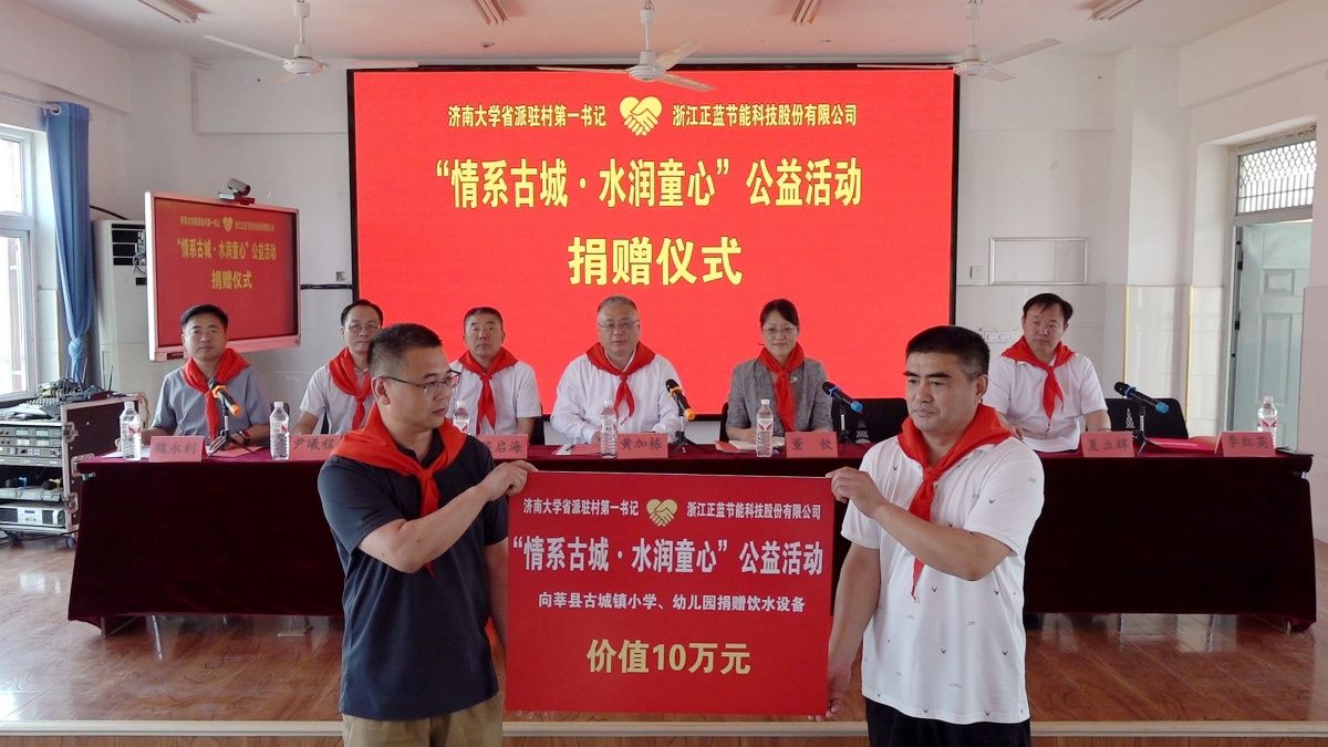 張玉賀代表浙江正藍(lán)節(jié)能科技股份有限公司向古城鎮(zhèn)小學(xué)、幼兒園捐贈了價值10萬元的飲水設(shè)備。他在講話中承諾,浙江正藍(lán)節(jié)能科技股份有限公司將持續(xù)踐行社會責(zé)任,助力鄉(xiāng)村振興。據(jù)悉,此次捐贈的飲水設(shè)備將覆蓋古城鎮(zhèn)2所小學(xué)和1所幼兒園,惠及千余名師生。