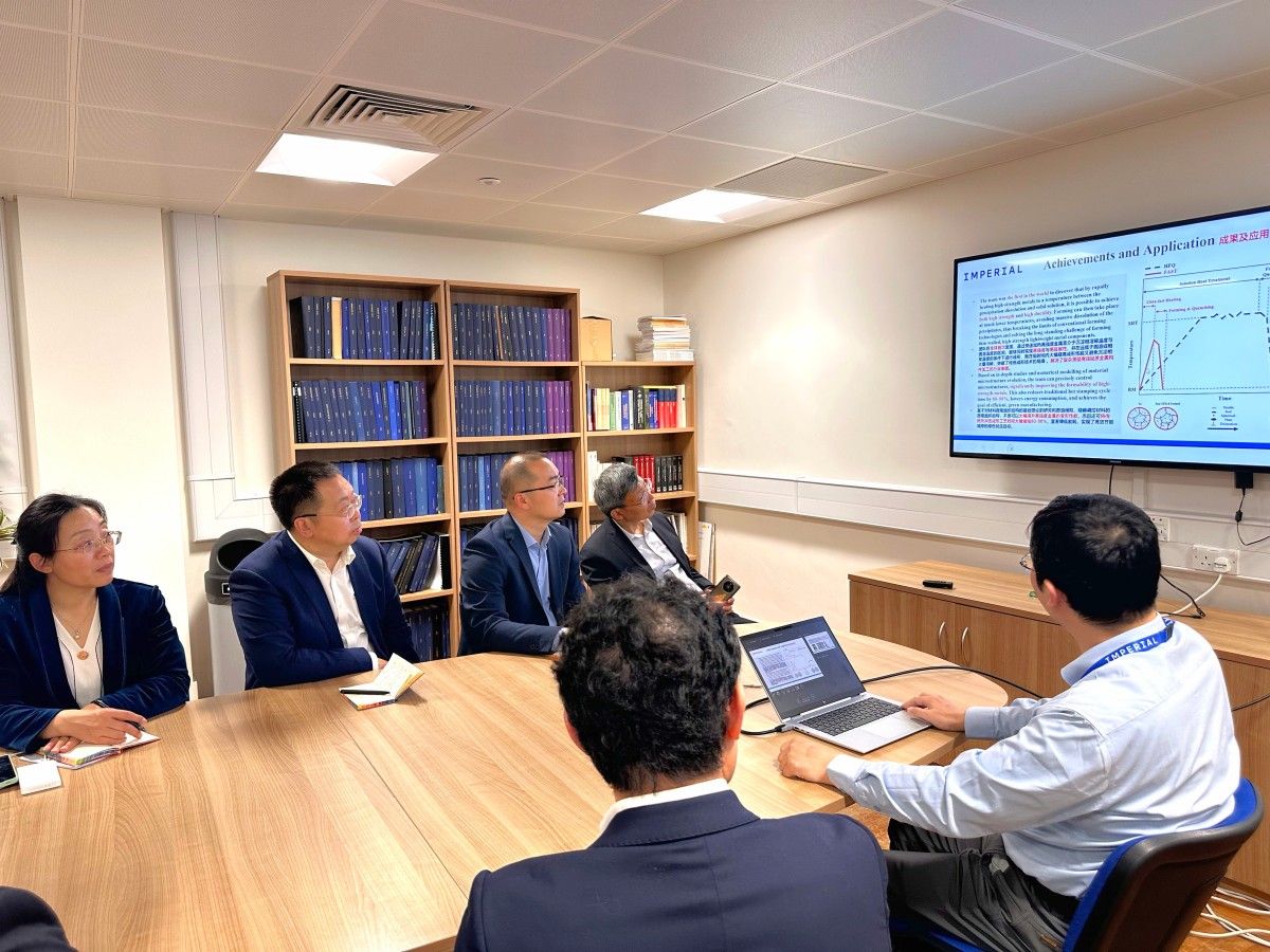 在帝國理工學(xué)院機(jī)械工程系,金屬成型與材料模擬團(tuán)隊石慧峰教授介紹了帝國理工學(xué)院及所在團(tuán)隊研究情況,雙方就科研合作、師生交流、建立聯(lián)合實驗室等方面進(jìn)行充分交流。