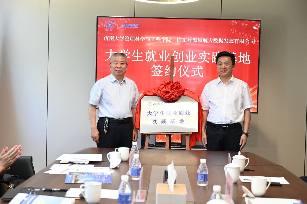 簽約儀式上,徐偉與田青共同簽署《濟(jì)南大學(xué)大學(xué)生就業(yè)創(chuàng)業(yè)實(shí)踐基地協(xié)議》,徐征和與李經(jīng)國(guó)共同為實(shí)踐基地揭牌。