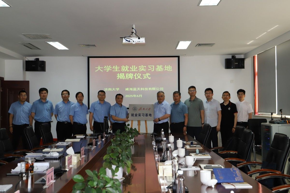 在威海,黃加棟一行實(shí)地考察了威海藍(lán)天科技有限公司生產(chǎn)研發(fā)一線,詳細(xì)了解企業(yè)在軟件研發(fā)設(shè)計(jì)等領(lǐng)域的最新產(chǎn)品與技術(shù)需求。座談會(huì)上,校企雙方圍繞就業(yè)實(shí)習(xí)、產(chǎn)學(xué)研合作、人才培養(yǎng)等方面進(jìn)行了廣泛而深入的交流,簽訂了“濟(jì)南大學(xué)就業(yè)實(shí)習(xí)基地”協(xié)議,黃加棟與威海藍(lán)天科技有限公司總經(jīng)理叢云龍共同為就業(yè)實(shí)習(xí)基地揭牌。