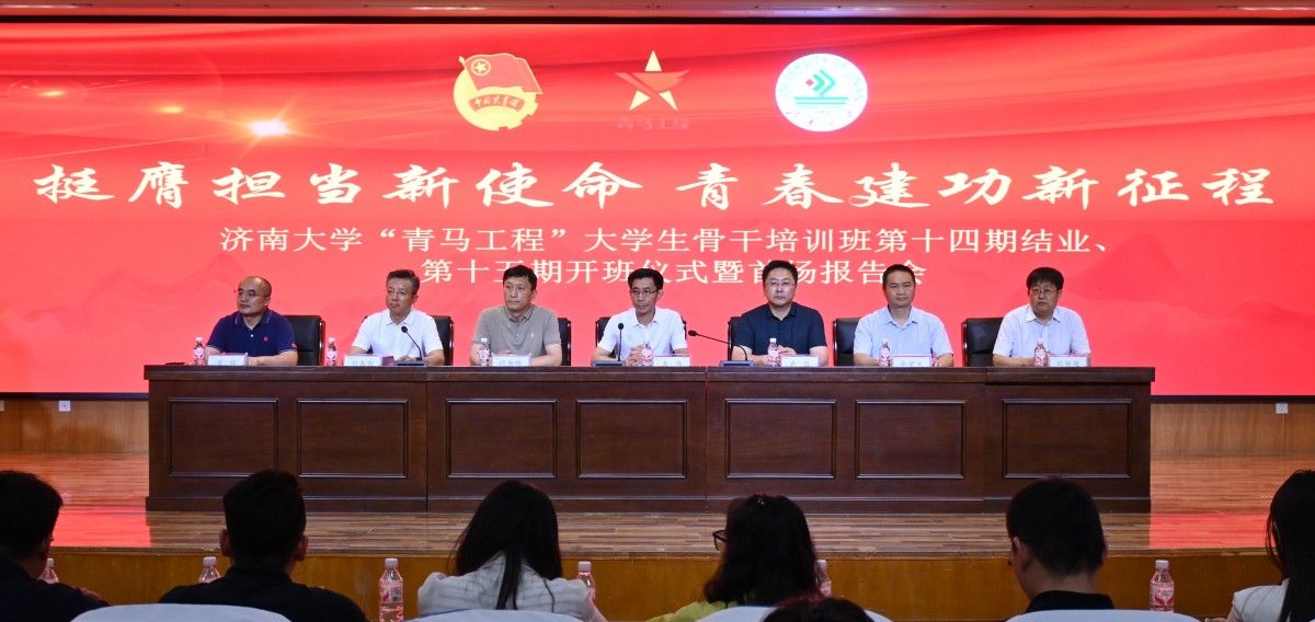 6月10日下午,濟(jì)南大學(xué)“青馬工程”大學(xué)生骨干培訓(xùn)班第十四期結(jié)業(yè)、第十五期開班儀式暨首場報告會在第二學(xué)術(shù)報告廳舉行。黨委常委、副校長李強(qiáng),黨委常委、宣傳部部長、學(xué)生工作部部長盧旺出席活動,黨委組織部、黨委保衛(wèi)部、馬克思主義學(xué)院相關(guān)負(fù)責(zé)同志,全體專職團(tuán)干部,濟(jì)南大學(xué)習(xí)近平新時代中國特色社會主義思想青年研習(xí)社成員,濟(jì)南大學(xué)“青馬工程”第十四期、第十五期大學(xué)生骨干培訓(xùn)班學(xué)員參加活動,馬克思主義學(xué)院副教授梁棟作專題報告。儀式由團(tuán)委書記胡春毅主持。
