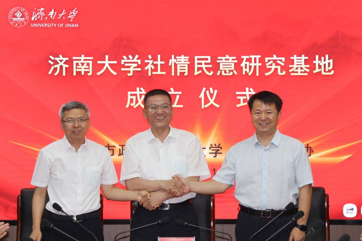 6月12日上午,濟(jì)南市政協(xié)、濟(jì)南大學(xué)、市中區(qū)政協(xié)三方共建“社情民意研究基地”簽約暨揭牌儀式在我校舉行。市政協(xié)秘書長、黨組成員李旭東,市中區(qū)政協(xié)主席、黨組書記王書信,濟(jì)南大學(xué)黨委常委、副校長黃加棟出席活動(dòng)。濟(jì)南市政協(xié)、市中區(qū)政協(xié)有關(guān)負(fù)責(zé)同志,學(xué)校黨委統(tǒng)戰(zhàn)部、科技處、社科處、政法學(xué)院有關(guān)負(fù)責(zé)人及部分教師參加了活動(dòng)。簽約儀式由社科處處長、政法學(xué)院院長高功敬主持。