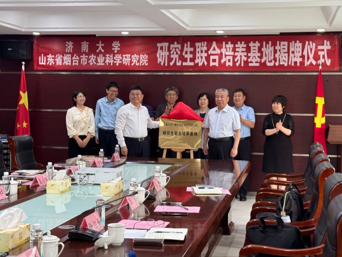 上午,校地雙方在煙臺市農(nóng)業(yè)科學研究院舉行“濟南大學研究生聯(lián)合培養(yǎng)基地”揭牌儀式。煙臺市農(nóng)業(yè)農(nóng)村局黨組成員、副局長劉倩,煙臺市農(nóng)科院黨委書記吳吉壯、黨委副書記郭緒良等出席活動。