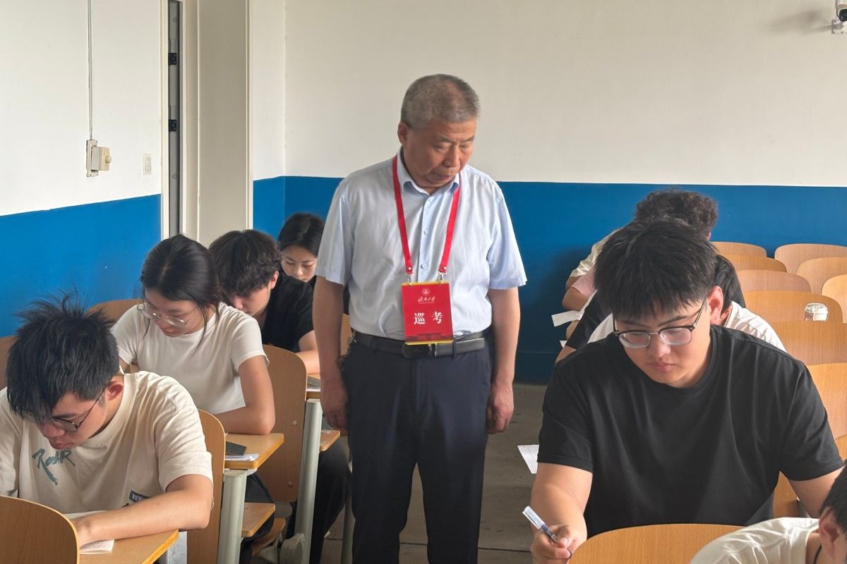 6月23日,本學(xué)期期末考試正式拉開序幕。為確??荚嚬ぷ饕?guī)范有序開展,嚴(yán)肅考風(fēng)考紀(jì),學(xué)校黨委副書記、校長(zhǎng)劉宗明,副校長(zhǎng)徐征和,在學(xué)校辦公室、教務(wù)處等部門負(fù)責(zé)同志陪同下,對(duì)期末考試組織開展情況進(jìn)行巡視檢查。