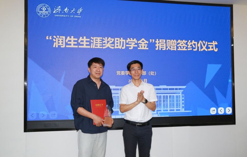 此次簽約,山東潤生集團(tuán)將每年向濟(jì)南大學(xué)“潤生生涯獎助學(xué)金”注資人民幣10萬元,周期10年,共計(jì)人民幣100萬元,用于獎勵(lì)我?!皾?jì)大繁星”評選活動選樹的優(yōu)秀學(xué)生,以彰顯企業(yè)社會責(zé)任,傳遞校友愛心正能量。潤物無聲,澤被后學(xué);生生不息,薪火相傳。下一步,學(xué)校將不斷優(yōu)化選樹機(jī)制,持續(xù)擴(kuò)大活動影響,確保獎助學(xué)金真正用到實(shí)處、發(fā)揮實(shí)效,讓每一位受益者都能感受到濟(jì)大優(yōu)秀校友對母校的深情厚誼和強(qiáng)烈社會責(zé)任感,激勵(lì)更多濟(jì)大學(xué)子奮發(fā)向上、勇敢追夢,努力成為堪當(dāng)民族復(fù)興重任的時(shí)代新人。