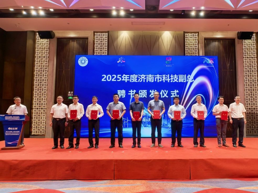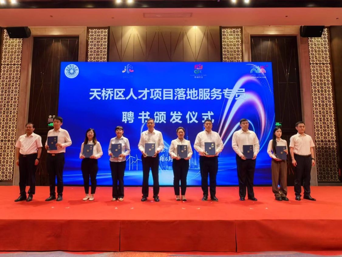 活動(dòng)現(xiàn)場(chǎng)頒發(fā)了2025年度濟(jì)南市科技副總、天橋區(qū)人才項(xiàng)目落地服務(wù)專員聘書(shū)。來(lái)自山東大學(xué)、濟(jì)南大學(xué)等駐濟(jì)高校的8位專家學(xué)者受聘擔(dān)任“科技副總”;天橋區(qū)選派17名干部擔(dān)任人才項(xiàng)目落地服務(wù)專員。