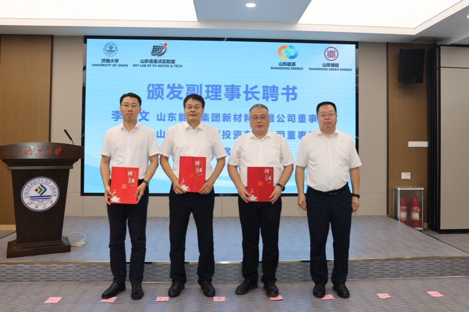 會上,劉宗明和史志遠(yuǎn)共同為山東省太陽能光伏材料與能源高效利用技術(shù)重點(diǎn)實(shí)驗(yàn)室(籌)揭牌。劉宗明為學(xué)術(shù)委員會主任武漢理工大學(xué)傅正義院士、理事會成員頒發(fā)聘書。傅正義院士為中國科學(xué)院合肥物質(zhì)科學(xué)研究院孟國文教授、東北大學(xué)孫旭東教授、天津工業(yè)大學(xué)李越教授、蘇州大學(xué)李亮教授、核芯光電(山東)科技有限公司張萬昌研究員、西北工業(yè)大學(xué)王洪強(qiáng)教授、中國科學(xué)院青島能源所、山東省能源研究院逄淑平研究員、山東浪潮華光光電子有限公司吳德華高級工程師、山東綠能科技服務(wù)有限公司孫冰瑩高級工程師、山東大學(xué)于偉泳教授、濟(jì)南大學(xué)曹丙強(qiáng)教授等學(xué)術(shù)委員會委員頒發(fā)聘書。