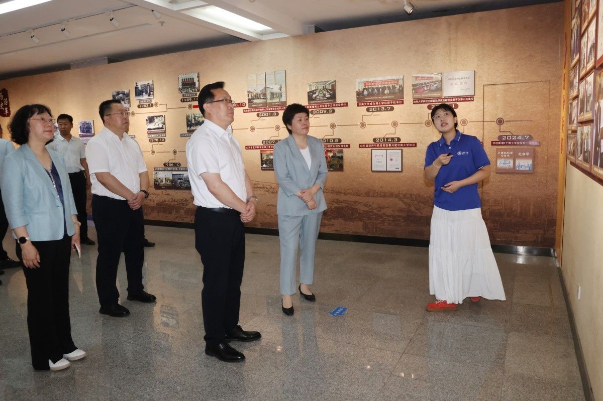 雙方圍繞黨建工作、績效考核、人才工作等進行了深入交流和探討。會前,徐劍波一行參觀了濟南大學辦學成就展。