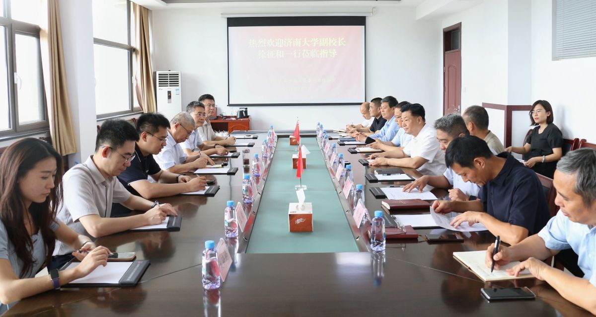 在棗莊市臺兒莊區(qū)泥溝鎮(zhèn),徐征和一行先后參觀了蘭祺智慧農(nóng)業(yè)綜合體、“菇韻蘭祺”鄉(xiāng)村振興示范區(qū),看望了學(xué)院在此參加暑期“三下鄉(xiāng)”社會實踐活動的學(xué)生并開展座談會。座談會上,李冬光對徐征和一行的到來表示歡迎,并簡要介紹了臺兒莊區(qū)的基本情況以及在鄉(xiāng)村振興戰(zhàn)略實施中的創(chuàng)新舉措和人才需求。徐征和介紹了濟南大學(xué)在學(xué)科建設(shè)、人才培養(yǎng)、社會服務(wù)等方面的辦學(xué)特色和優(yōu)勢。他強調(diào),學(xué)校將以此次調(diào)研和社會實踐活動為紐帶,深化實踐育人體系建設(shè),拓展校地合作空間,既為在校生提供實踐鍛煉平臺,也為畢業(yè)生創(chuàng)造更多就業(yè)機會,同時助力地方經(jīng)濟社會發(fā)展,推動實現(xiàn)校地優(yōu)勢互補、合作共贏。周剛在總結(jié)中指出,通過此次活動,深刻感受到濟南大學(xué)在服務(wù)地方發(fā)展中的務(wù)實作風(fēng)和責(zé)任擔(dān)當(dāng),希望能夠與濟南大學(xué)建立起長期的戰(zhàn)略合作關(guān)系,共同譜寫校地合作新篇章。