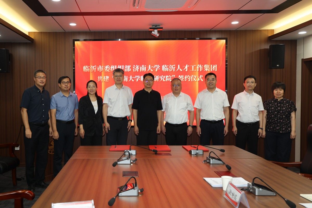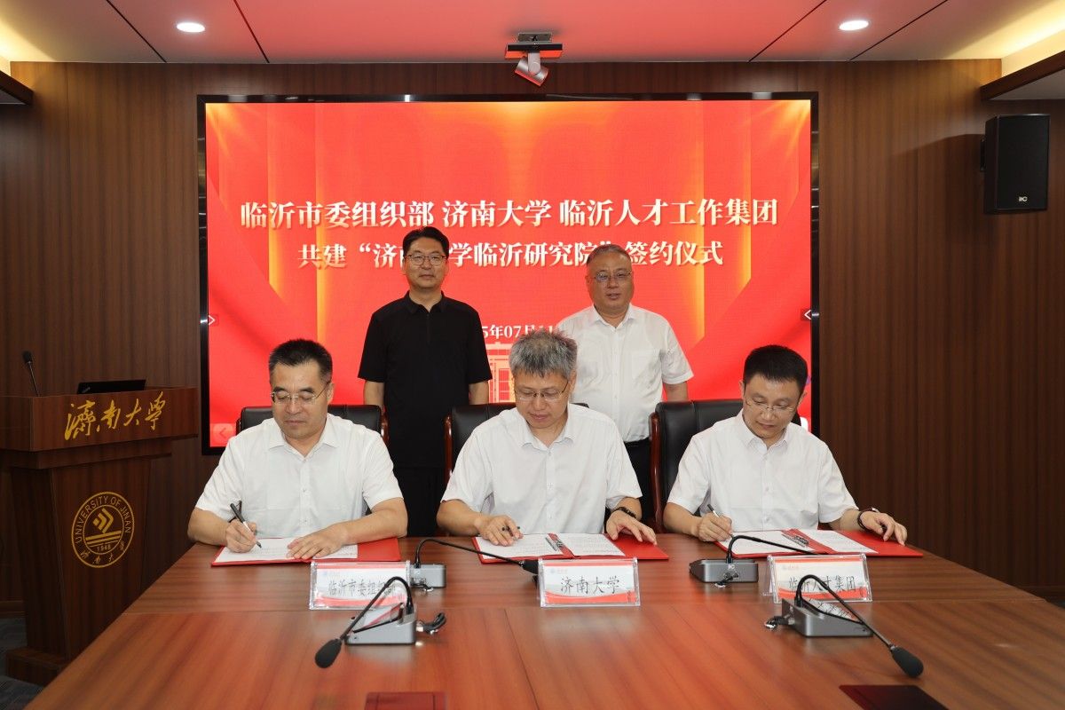 7月11日,學(xué)校與臨沂市委組織部、臨沂人才工作集團(tuán)共建“濟(jì)南大學(xué)臨沂研究院”簽約儀式舉行。臨沂市委常委、組織部部長(zhǎng)肖永濤,臨沂市委組織部副部長(zhǎng)、市委人才發(fā)展服務(wù)中心主任李玉法,臨沂人才工作集團(tuán)黨委書(shū)記、董事長(zhǎng)常兵參加簽約活動(dòng)。學(xué)校黨委書(shū)記劉春華出席活動(dòng)并會(huì)見(jiàn)了肖永濤一行,學(xué)校黨委常委、副校長(zhǎng)黃加棟,學(xué)校黨委辦公室 校長(zhǎng)辦公室、科技處、社科處、研究生院、合作發(fā)展處等單位相關(guān)負(fù)責(zé)人參加活動(dòng)。簽約儀式由合作發(fā)展處處長(zhǎng)劉振主持。