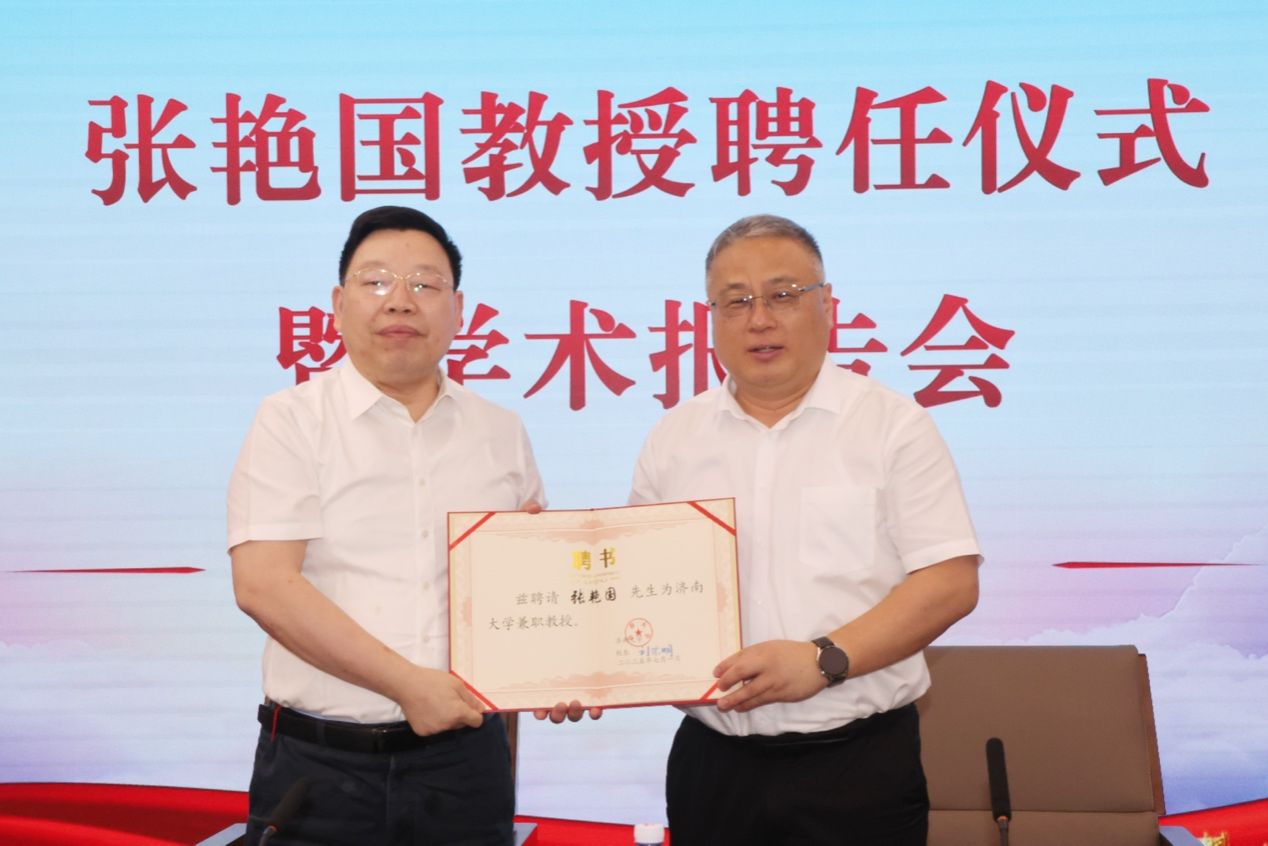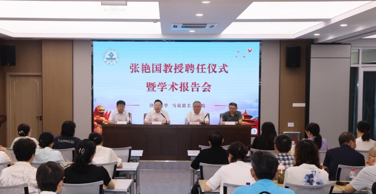 7月7日,張艷國(guó)教授聘任儀式暨學(xué)術(shù)報(bào)告會(huì)在學(xué)校第五會(huì)議室舉行。濟(jì)南大學(xué)黨委常委、副校長(zhǎng)黃加棟出席并致辭。馬克思主義學(xué)院領(lǐng)導(dǎo)班子成員和全體教師參加會(huì)議。