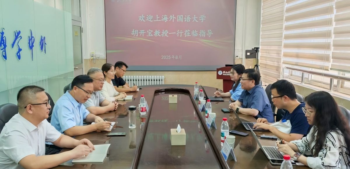 8月18日下午,上海外國(guó)語(yǔ)大學(xué)校長(zhǎng)助理兼上海外國(guó)語(yǔ)大學(xué)語(yǔ)言科學(xué)研究院院長(zhǎng)胡開寶教授一行來(lái)我校開展學(xué)術(shù)交流活動(dòng)。濟(jì)南大學(xué)黨委常委、副校長(zhǎng)黃加棟,外國(guó)語(yǔ)學(xué)院領(lǐng)導(dǎo)班子成員、各系部教師代表參與活動(dòng)。本次座談會(huì)由外國(guó)語(yǔ)學(xué)院院長(zhǎng)宋慶偉主持。