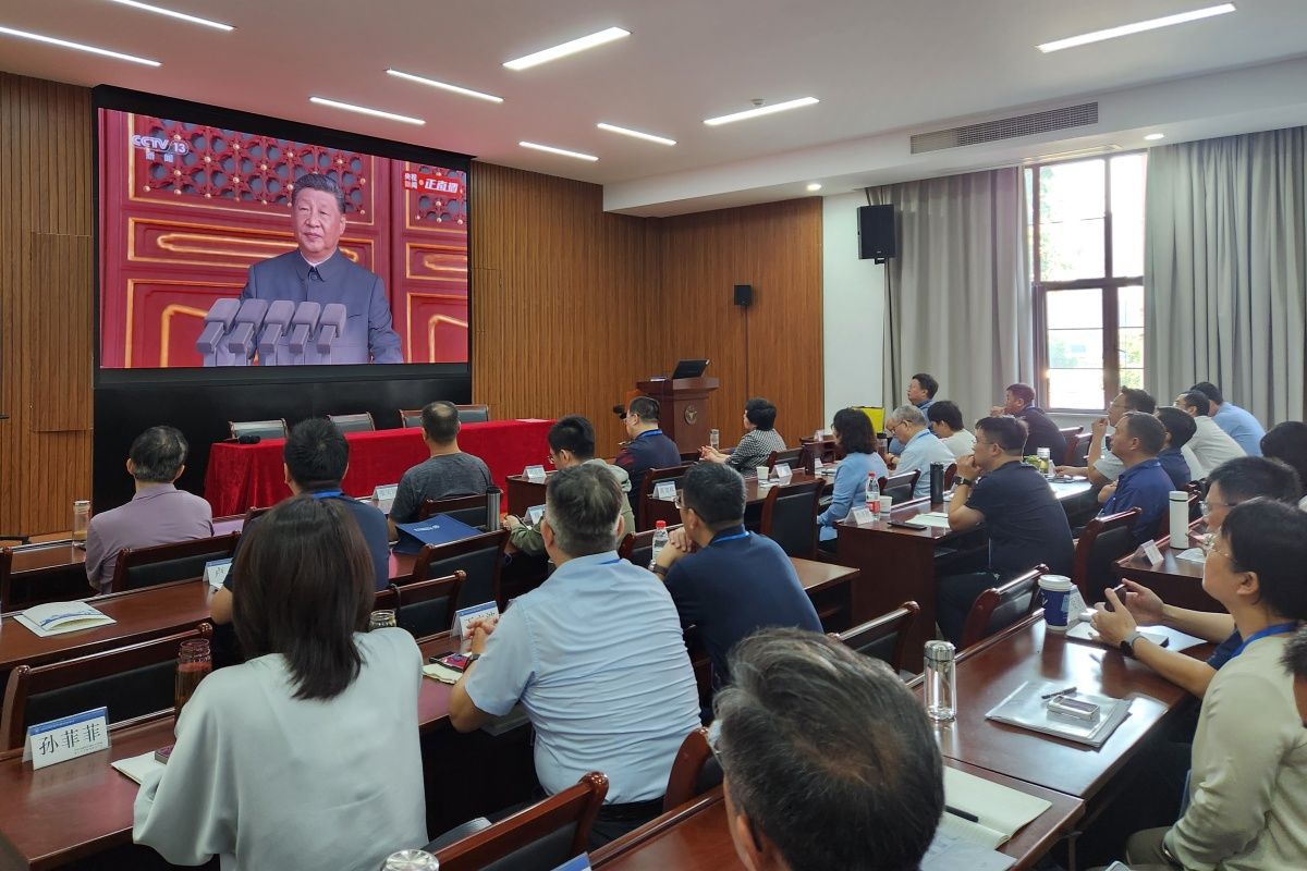 9月3日,紀念中國人民抗日戰(zhàn)爭暨世界反法西斯戰(zhàn)爭勝利80周年大會在北京隆重舉行。正值濟南大學(xué)2025年暑期干部履職能力提升培訓(xùn)班培訓(xùn)期間,學(xué)校全體領(lǐng)導(dǎo)班子成員、部門負責人集中收看實況直播,共同觀看大會盛況,紀念抗戰(zhàn)偉大勝利,汲取開拓未來的智慧和力量。