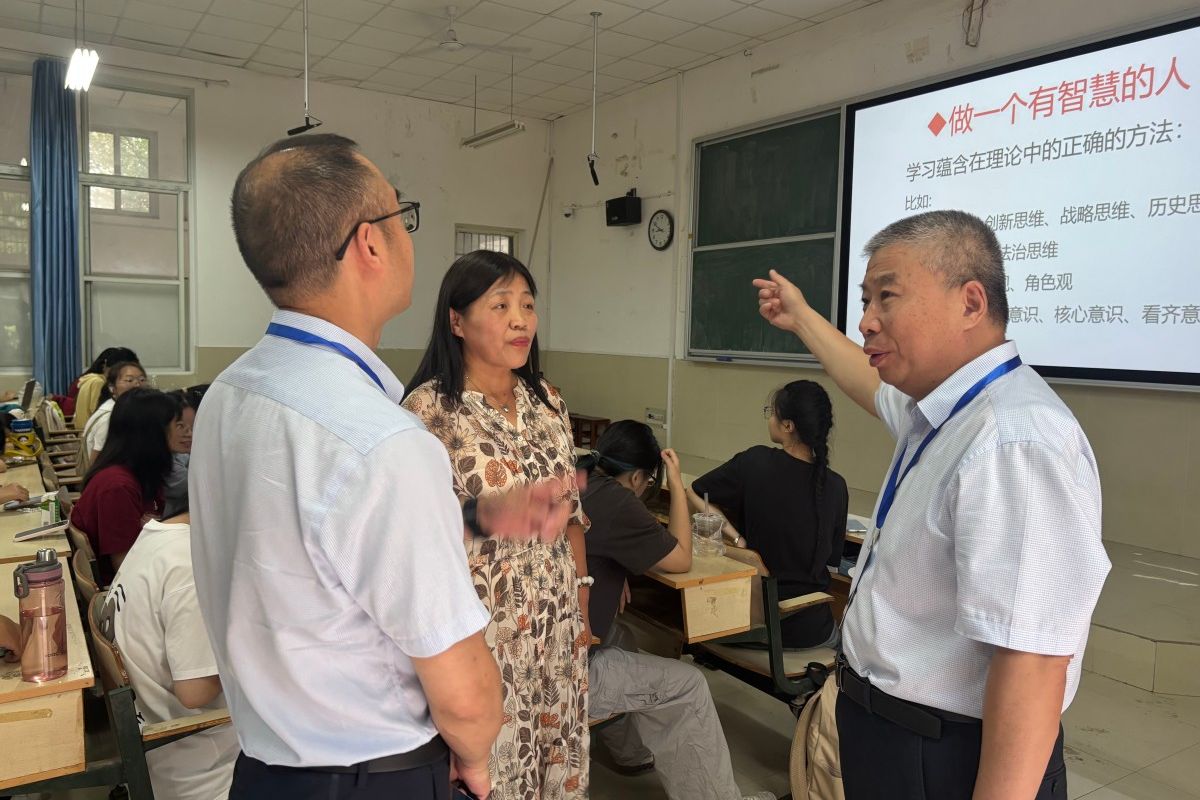 劉宗明和徐征和在主校區(qū)、舜耕校區(qū)分別走進教室聽了馬克思主義學(xué)院的《習(xí)近平新時代中國特色社會主義思想概論》課程,認真觀察課堂教學(xué)過程,詳細記錄教師的教學(xué)內(nèi)容、教學(xué)方法以及學(xué)生的課堂表現(xiàn)。校領(lǐng)導(dǎo)還與授課教師探討了教學(xué)方法和教學(xué)設(shè)計,對教師們精心備課、認真授課的態(tài)度給予充分肯定。