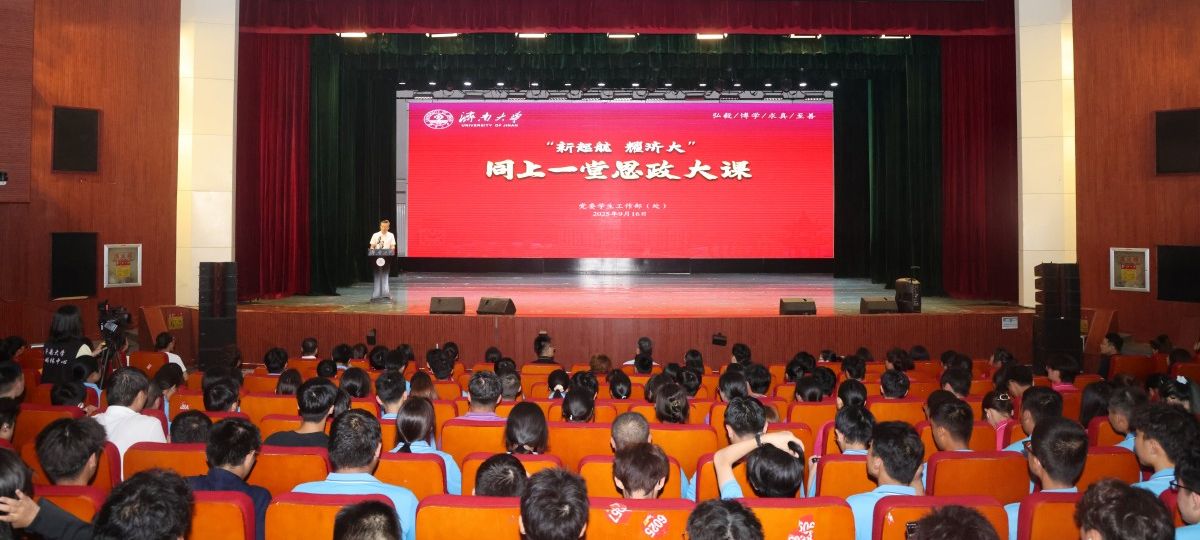 為深入學習貫徹黨的二十屆三中全會和全國教育大會精神,貫徹落實習近平總書記關(guān)于加快建設教育強國的重要論述,引導2025級新生堅定理想信念、厚植家國情懷、增強愛校榮校意識。9月16日,學校在大禮堂舉辦“新起航 耀濟大”——同上一堂思政大課活動,邀請山東省優(yōu)秀教師、山東高校思想政治課教學名師、濟南大學教學名師、馬克思主義學院概論部主任李朋忠教授授課,全體2025級新生通過線上線下相結(jié)合的方式參與學習,黨委學生工作部(處)負責人、各學院新生輔導員參加活動?;顒佑牲h委學生工作部(處) 武裝部部(處)長胡春毅主持。