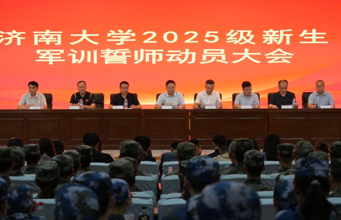 為深化學(xué)生國(guó)防教育工作,學(xué)校于9月11日召開濟(jì)南大學(xué)2025級(jí)新生軍訓(xùn)誓師動(dòng)員大會(huì)。學(xué)校黨委常委、黨委宣傳部部長(zhǎng)、軍訓(xùn)師政治部主任盧旺出席會(huì)議并講話。黨委學(xué)生工作部(處)武裝部、黨委保衛(wèi)部安全管理處、教務(wù)處、團(tuán)委、校醫(yī)院、體育學(xué)院等部門和學(xué)院相關(guān)負(fù)責(zé)同志,各學(xué)院黨委副書記、新生輔導(dǎo)員和學(xué)校軍訓(xùn)教導(dǎo)大隊(duì)全體教官參加了會(huì)議。會(huì)議由黨委學(xué)生工作部(處)武裝部部(處)長(zhǎng)、軍訓(xùn)師副參謀長(zhǎng)胡春毅主持。