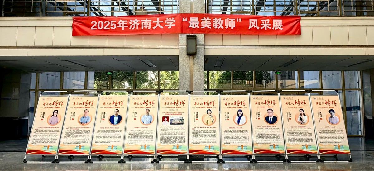 此次,學校將公益活動與弘揚踐行教育家精神深度融合,以教育家精神鑄魂強師,大力弘揚優(yōu)秀尊師文化,在第十教學樓大廳舉辦2025年濟南大學“最美教師”風采展,與樓外電子屏上的“慶祝第41個教師節(jié)”交相輝映,形成全方位、立體化的宣傳矩陣,全面展示了新時代我校教師風采。