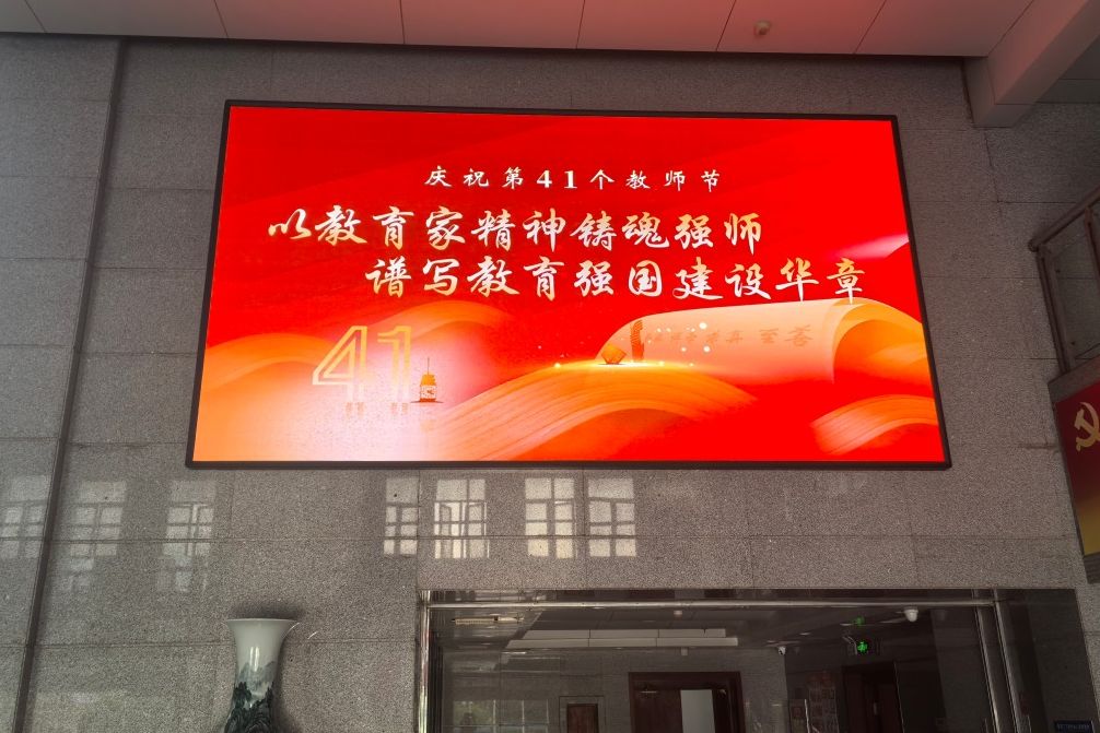 在行政樓、教學樓、圖書館、宣傳欄的電子屏上滾動播放著致敬教師的標語和畫面,“教育家精神鑄魂強師,譜寫教育強國建設華章!”“老師,您好!”“教師節(jié)快樂!”“老師您辛苦了!”等祝福語表達出對全體教師的崇高敬意。