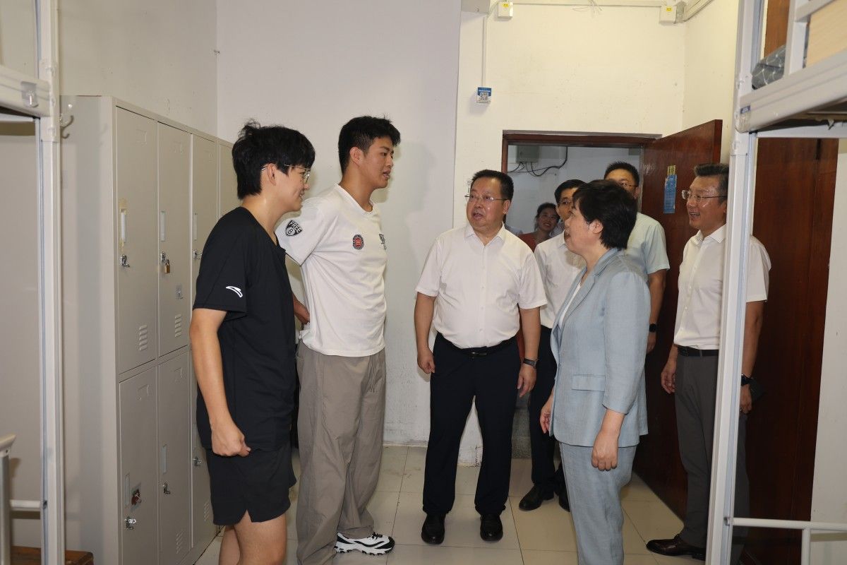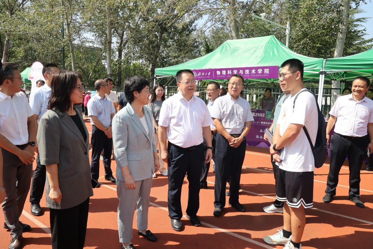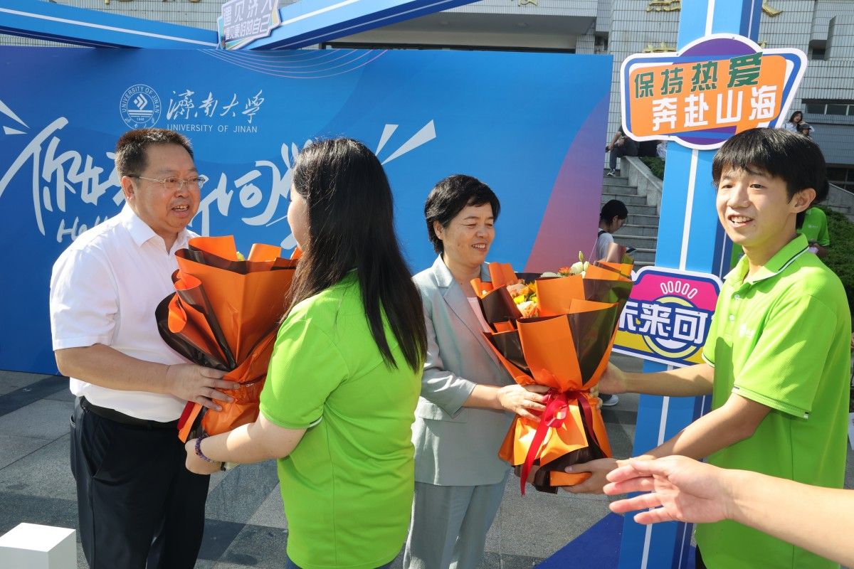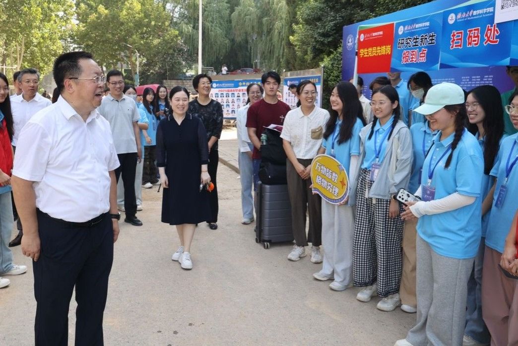 迎新當(dāng)天,學(xué)校黨委書記劉春華,黨委副書記、校長劉宗明,黨委常委、副校長李強,黨委常委、宣傳部部長盧旺一行來到主校區(qū)和舜耕校區(qū)迎新現(xiàn)場,看望前來報到的新生和家長,慰問奮戰(zhàn)在迎新一線的工作人員并實地察看了學(xué)生公寓等基礎(chǔ)設(shè)施。學(xué)校辦公室、黨委宣傳部、黨委學(xué)生工作部、安全管理處、教務(wù)處、黨委研究生工作部、后勤管理處、信息管理處等部門負責(zé)人,也一同來到迎新現(xiàn)場,歡迎2025級新同學(xué)的到來。