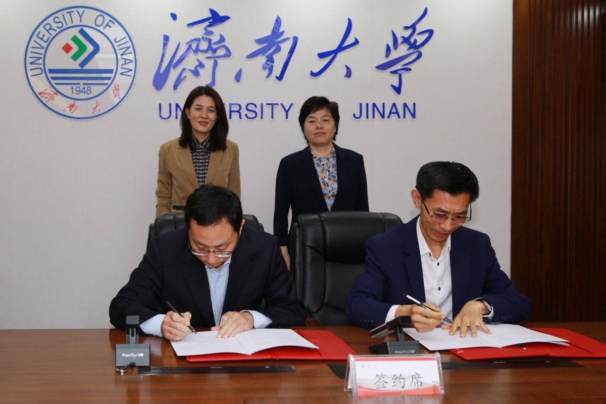 李強(qiáng)和陳偉分別代表濟(jì)南大學(xué)和招商銀行濟(jì)南分行簽署戰(zhàn)略合作框架協(xié)議。
