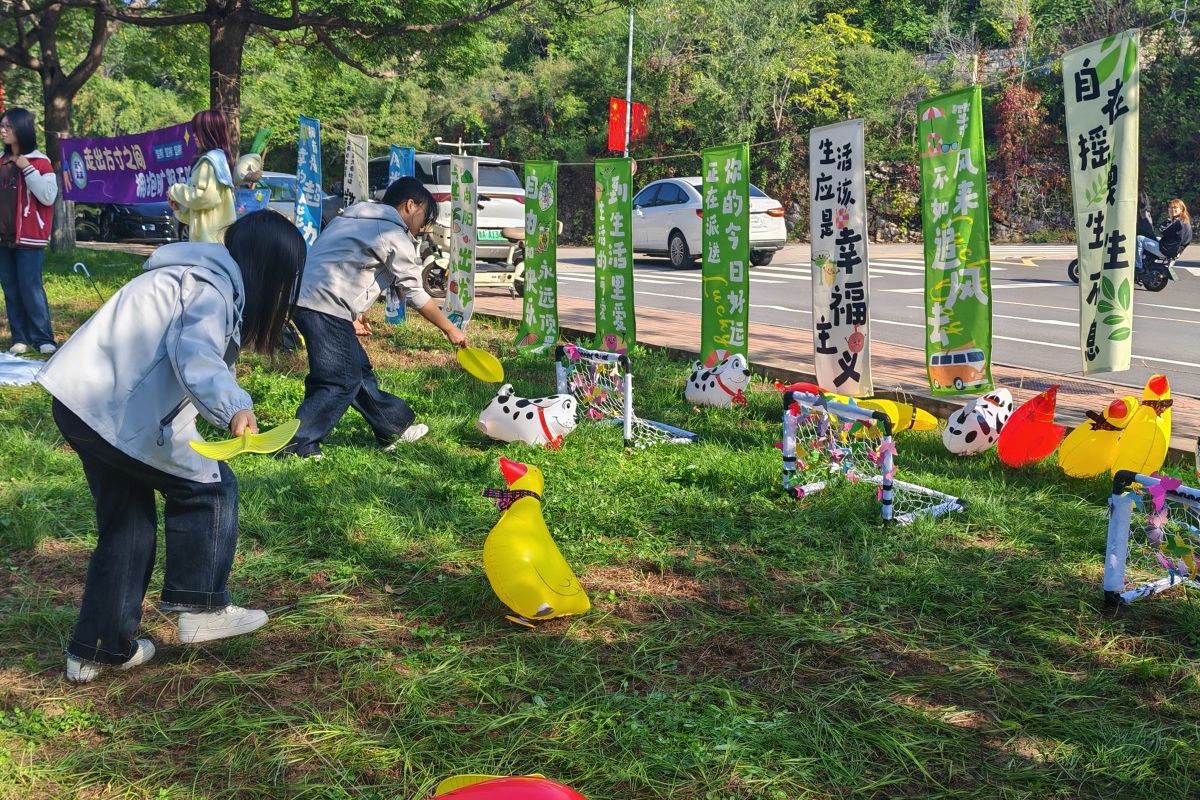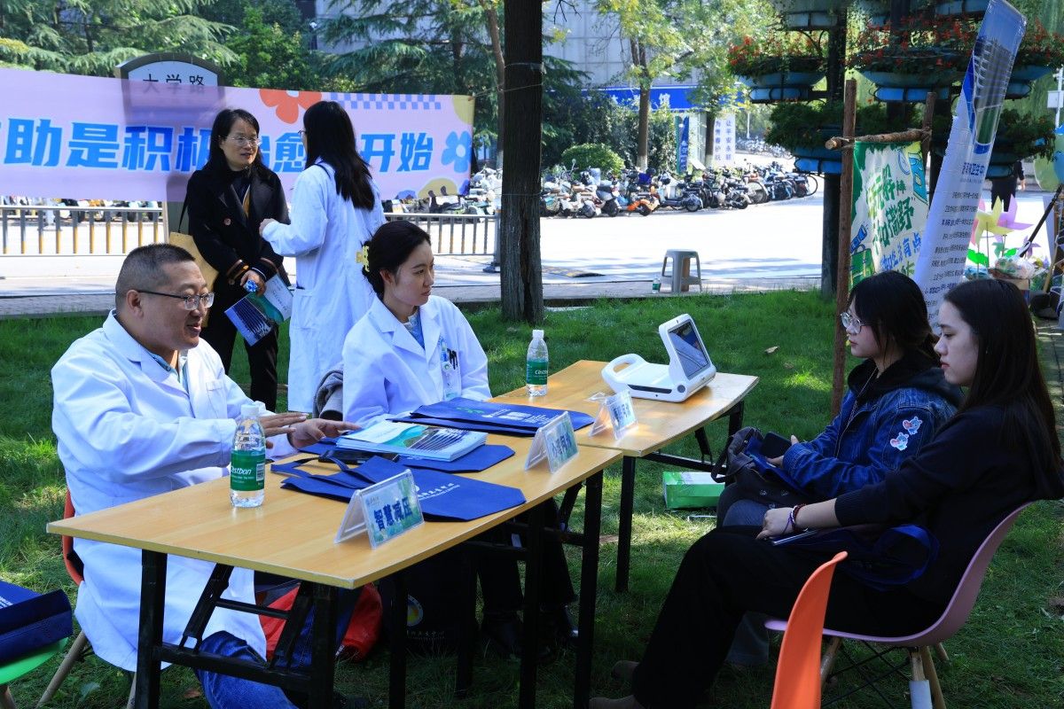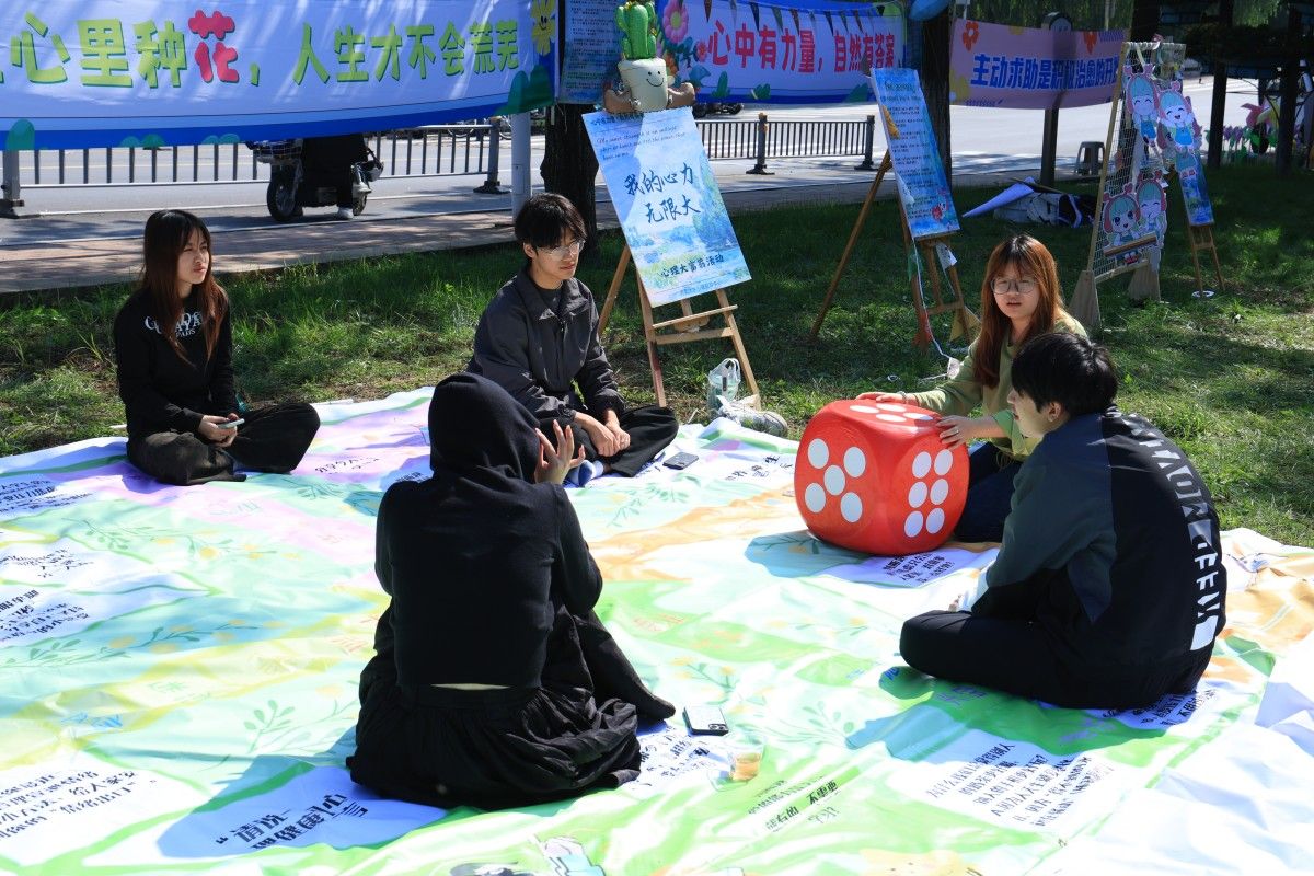 體驗(yàn)月以“心中有力量,自然有答案”為主題,整合校家醫(yī)警社資源,以積極心理學(xué)中的PERMA模型為理念,以心理義診、音樂抒情、運(yùn)動減壓、閱讀療愈、朋輩輔導(dǎo)、主題班會、家校課堂、心理測評、個體咨詢和團(tuán)體輔導(dǎo)為活動形式,將“積極情緒、投入、人際關(guān)系、意義、成就感”五大核心要素融入自然心理療愈。依托“滋蘭苑”自然元素設(shè)置“安心綠洲:心靈療愈區(qū)”“共生森林:活力互動區(qū)”“自由曠野:創(chuàng)意表達(dá)區(qū)”“回響之谷:自我賦能區(qū)”四個活動區(qū)域。其中,“安心綠洲”設(shè)置心理專家暖心義診、“草木與心的回響”情緒香囊、“交換心天地”心愿交換站、“寫出你的九萬里”心晴詩句,聚焦專業(yè)支持與情緒疏導(dǎo),通過心理咨詢、香囊制作、心愿交換、字畫抒情等方式療愈內(nèi)心?!肮采帧痹O(shè)置“專注力大挑戰(zhàn)”趕雞入籠、“我的心力無限大”心理大富翁、“輕松解壓不焦慮”煩惱搖搖樂、“越積極,越強(qiáng)大”九大積極動作,幫助學(xué)生在團(tuán)隊(duì)協(xié)作和運(yùn)動游戲中獲得心理支持。“自由曠野”設(shè)置“晴天制造局”雨傘彩繪、“人生出彩計(jì)劃”彩色涂鴉、“絢麗多彩心世界”微笑萬花筒、“扭一扭,樂一秋”奇幻扭扭樂,鼓勵學(xué)生以藝術(shù)創(chuàng)意釋放自我、表達(dá)心境。“回響之谷”設(shè)置“我真的很不錯”夸夸自我、“云朵與花朵的約會”甜心派對、“風(fēng)與歌的相遇”草地音樂活動,加強(qiáng)自我肯定,強(qiáng)化內(nèi)在力量。活動現(xiàn)場,濟(jì)南市精神衛(wèi)生中心心理專家進(jìn)行心理義診,學(xué)?!跋蛏闲那嗄辍眻F(tuán)隊(duì)進(jìn)行朋輩宣講?;顒悠陂g,學(xué)校在教學(xué)樓、圖書館、食堂和學(xué)生公寓等以滾動字幕、圖片等方式宣傳心理健康知識,學(xué)校廣播站循環(huán)播放“積極心理倡議書”,共同營造全環(huán)境心理育人氛圍。活動月期間,學(xué)校將持續(xù)開展新生適應(yīng)主題班會、“迎迎”家長課堂、“心悅讀”讀書會、心理案例沙龍等活動,壓實(shí)四級工作網(wǎng)絡(luò),培養(yǎng)學(xué)生積極心理品質(zhì)。