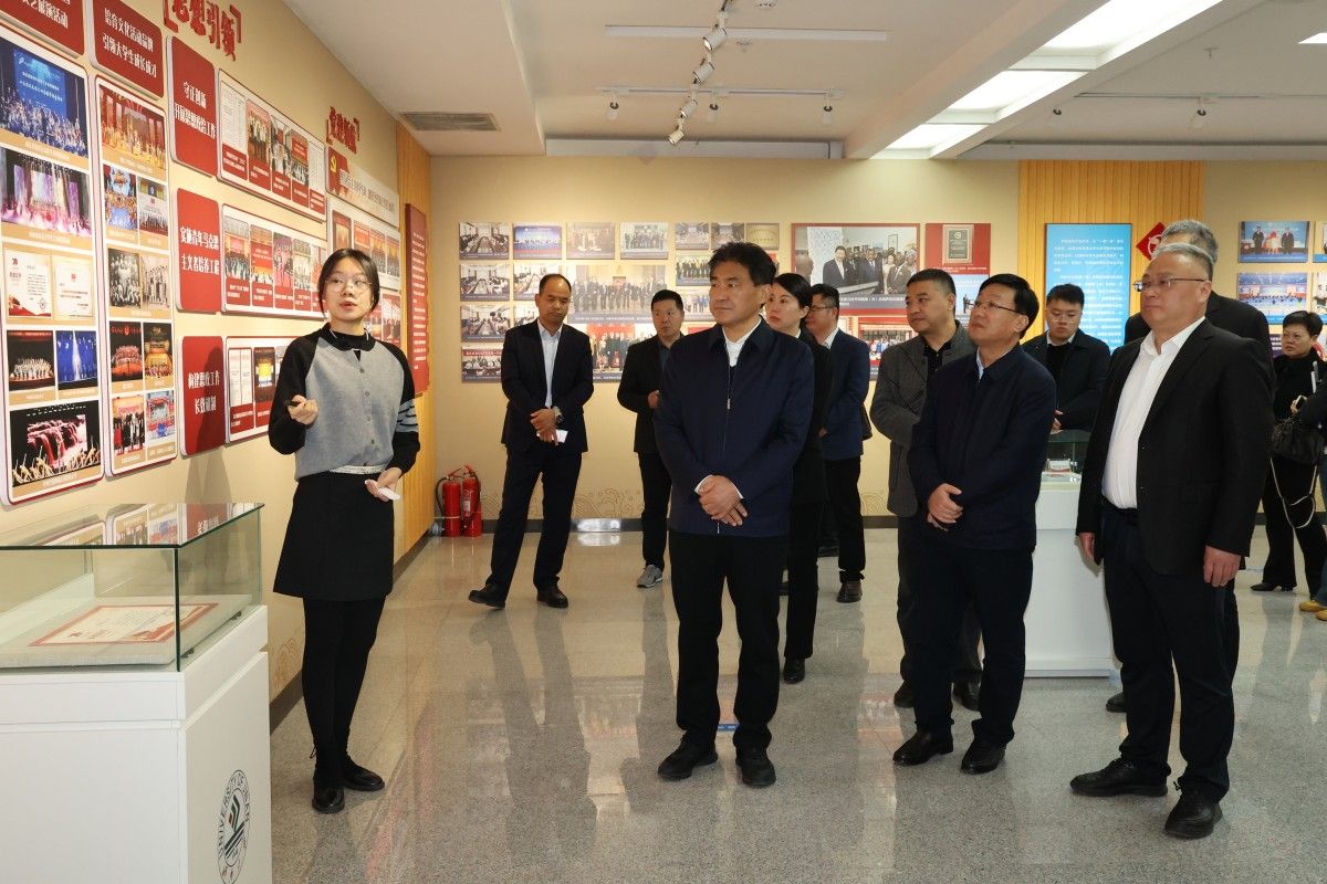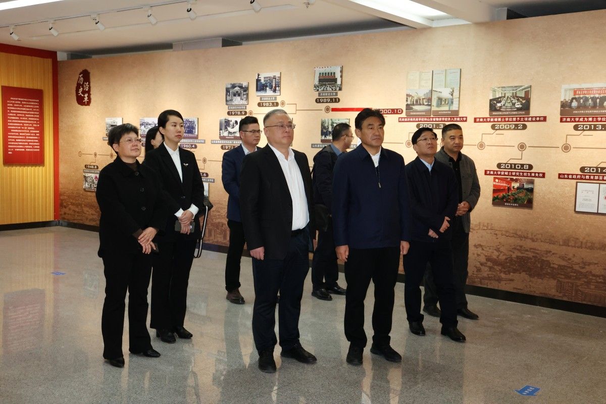 儀式結(jié)束后,王樂新一行在學(xué)校領(lǐng)導(dǎo)陪同下,參觀了濟(jì)南大學(xué)辦學(xué)成就展。