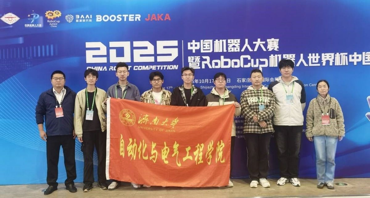 10月19日,由中國自動化學(xué)會主辦的2025中國機(jī)器人大賽暨RoboCup機(jī)器人世界杯中國賽在石家莊落下帷幕,濟(jì)南大學(xué)自動化與電氣工程學(xué)院本次報名參加了其中的三個賽項,分別是由李猛老師指導(dǎo),宋奇迅、陳天宇等同學(xué)完成的“工程競技類機(jī)器人——車型搬運(yùn)賽”;由趙欽君老師指導(dǎo),劉鑫陽、柏家燁等同學(xué)完成的“農(nóng)業(yè)機(jī)器人——節(jié)水灌溉機(jī)器人”;由張勤老師指導(dǎo),楊天宇、馮長瑞等同學(xué)完成的“四足仿生機(jī)器人——快遞運(yùn)輸賽小型組”。憑借創(chuàng)新的方案設(shè)計、完善的程序架構(gòu)以及出色的穩(wěn)定性,三支隊伍均取得了國家一等獎的好成績。