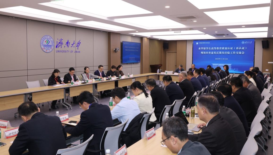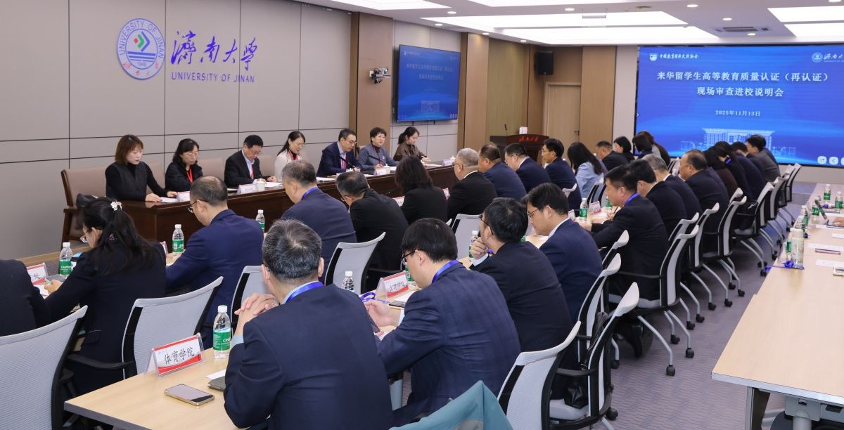進(jìn)校說明會上,中國教育國際交流協(xié)會原副秘書長周燕對來華留學(xué)生高等教育質(zhì)量認(rèn)證的背景、意義進(jìn)行了介紹。她指出,來華留學(xué)生高等教育質(zhì)量認(rèn)證已列入教育部督導(dǎo)局的教育評價項(xiàng)目清單,是國家來華留學(xué)質(zhì)量保障體系的重要組成部分,是全面評估高校來華留學(xué)教育成效的重要指標(biāo)。希望學(xué)校通過本次質(zhì)量認(rèn)證,充分發(fā)揮來華留學(xué)工作效能,進(jìn)一步筑牢質(zhì)量保障防線,將特色學(xué)科優(yōu)勢轉(zhuǎn)化為國際教育的核心競爭力,形成“留學(xué)濟(jì)大”的獨(dú)特價值。認(rèn)證專家組組長、哈爾濱師范大學(xué)國際教育學(xué)院院長張曉濤介紹了現(xiàn)場審查的工作內(nèi)容和要求。他表示,認(rèn)證小組將恪守紀(jì)律、廉潔自律,遵循客觀公正原則和專業(yè)精神,嚴(yán)格執(zhí)行認(rèn)證規(guī)則標(biāo)準(zhǔn)、全面采集信息并提出建設(shè)性意見,以確保認(rèn)證結(jié)果的客觀性、專業(yè)性和權(quán)威性。劉宗明對專家組的到來表示熱烈歡迎,他強(qiáng)調(diào),學(xué)校將以此次再認(rèn)證為契機(jī),以評促建、以評促改,不斷優(yōu)化來華留學(xué)教育質(zhì)量與管理體系,推動國際化辦學(xué)邁向更高水平。黃加棟代表學(xué)校向?qū)<医M匯報了學(xué)校來華留學(xué)教育整體情況。
