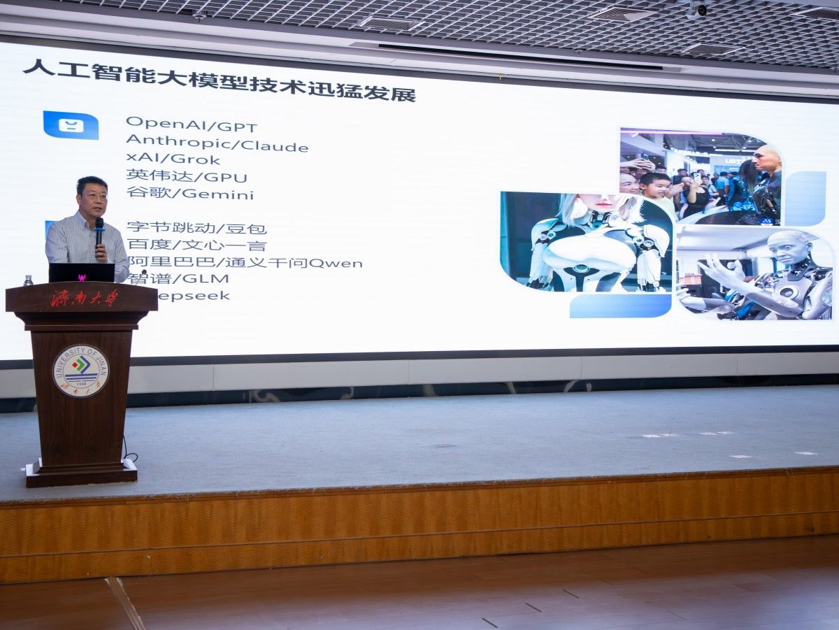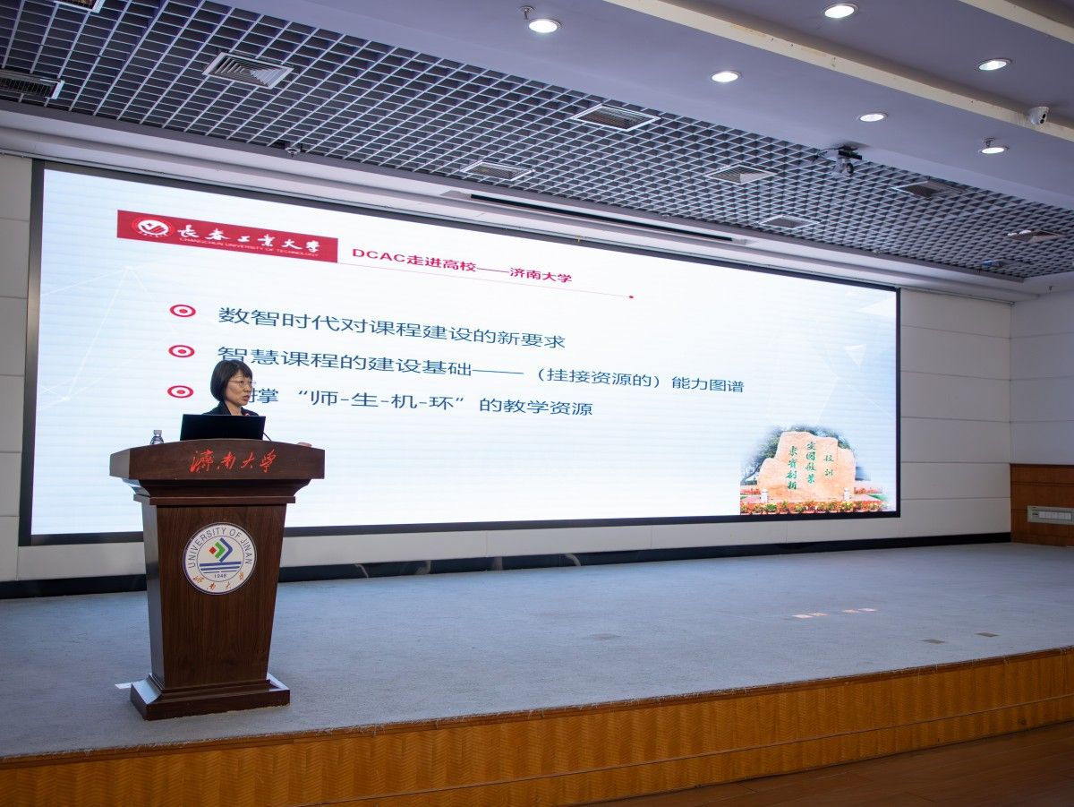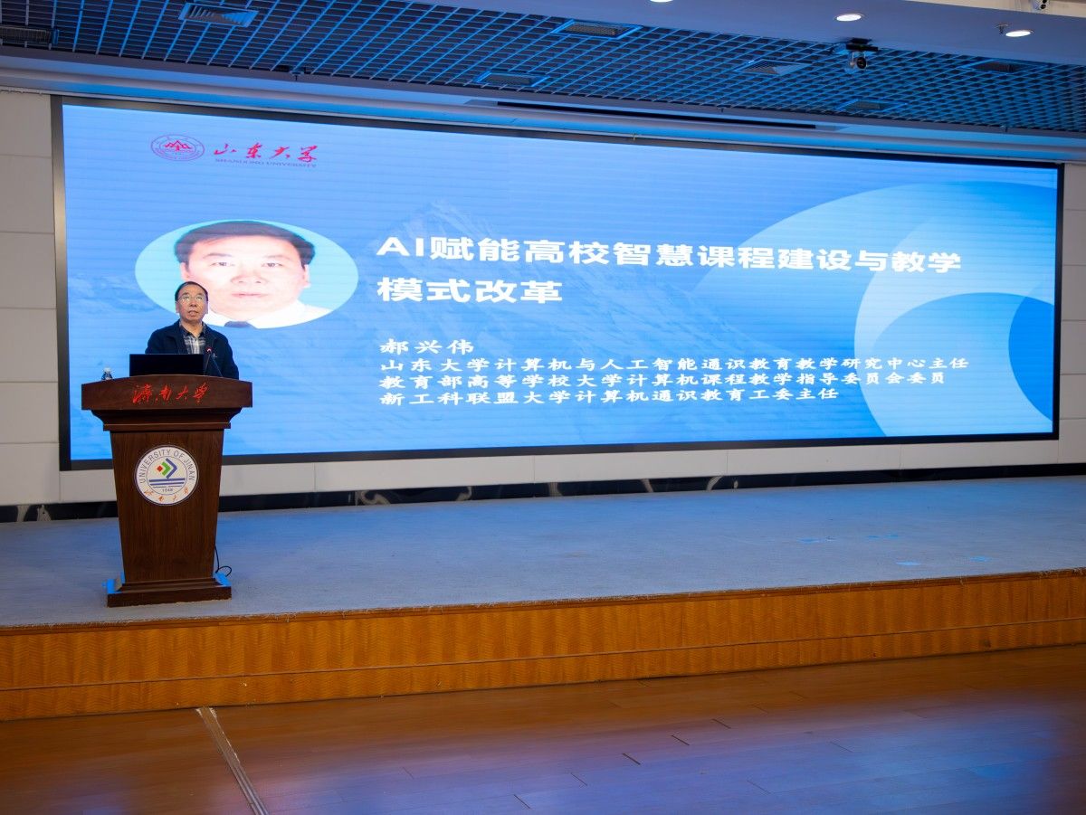 為探索新型教學(xué)模式,打造智慧課程,提升師生人工智能素養(yǎng),賦能新時(shí)代人才培養(yǎng),11月15日上午,由全國(guó)高等學(xué)校計(jì)算機(jī)教育研究會(huì)主辦,濟(jì)南大學(xué)、山東交通學(xué)院、山東計(jì)算機(jī)學(xué)會(huì)聯(lián)合承辦的“智慧課程建設(shè)系列研討會(huì)山東行暨全國(guó)高等學(xué)校計(jì)算機(jī)教育研究會(huì)應(yīng)用型計(jì)算機(jī)類專業(yè)院長(zhǎng)/系主任大會(huì)(DCAC)走進(jìn)高?!被顒?dòng)在濟(jì)南大學(xué)舉行。來(lái)自全國(guó)近30所高校的260余位計(jì)算機(jī)教育專家、教師代表齊聚一堂,圍繞智慧課程建設(shè)、人工智能賦能教育轉(zhuǎn)型等議題展開(kāi)深入研討。