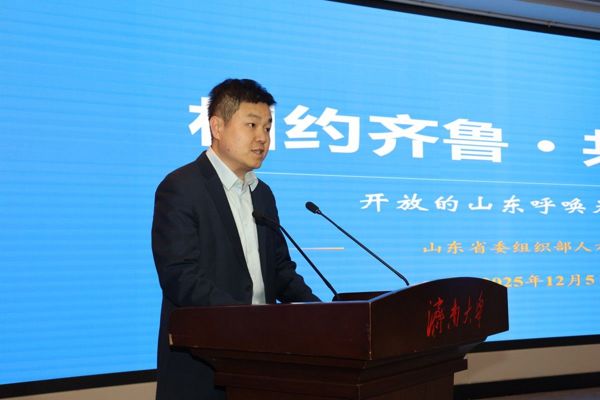 為深入學(xué)習(xí)貫徹落實(shí)黨的二十大和二十屆歷次全會(huì)精神,推進(jìn)教育、科技、人才協(xié)同融合發(fā)展,搭建全球青年學(xué)者交流合作、共謀發(fā)展的高端平臺(tái),12月5日,濟(jì)南大學(xué)召開2025年教育科技人才工作會(huì)議。山東省委教育工委委員、省教育廳黨組成員、副廳長(zhǎng)王浩出席會(huì)議并講話。山東省委組織部人才工作二處副處長(zhǎng)、三級(jí)調(diào)研員李寧,山東省人力資源和社會(huì)保障廳人才開發(fā)處副處長(zhǎng)孟娜,濟(jì)南市委組織部人才工作二處副處長(zhǎng)耿慶坤,濟(jì)南市科協(xié)人才部部長(zhǎng)郭翠翠,學(xué)校領(lǐng)導(dǎo)劉春華、商華、張慶國(guó)、續(xù)鐵、李強(qiáng)、黃加棟、徐征和、滕晉、徐慶國(guó)、盧旺等出席會(huì)議。本次會(huì)議分為開幕式、國(guó)際青年學(xué)者論壇、人才和科研工作分論壇,以及科研工作會(huì)議四個(gè)階段,以線上線下結(jié)合、主分論壇聯(lián)動(dòng)的形式召開。