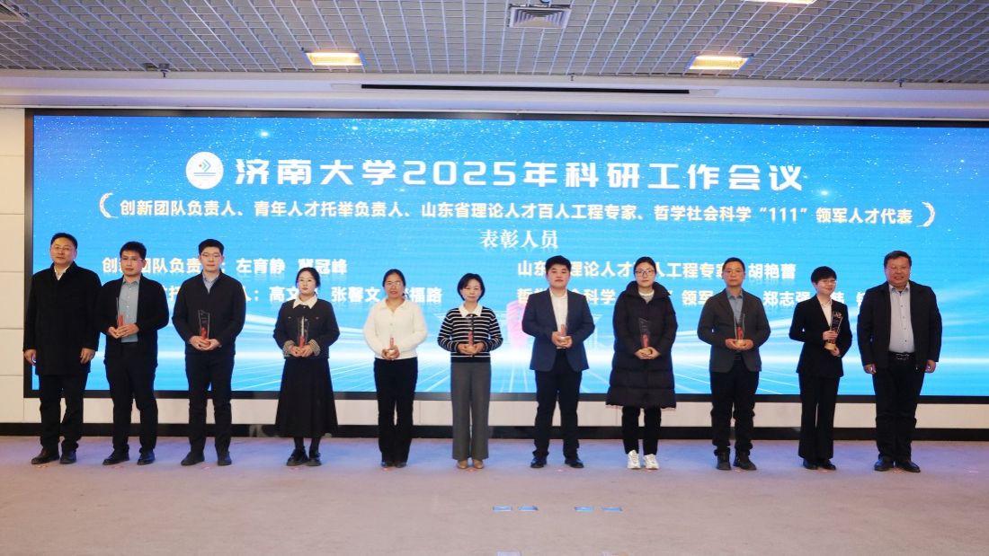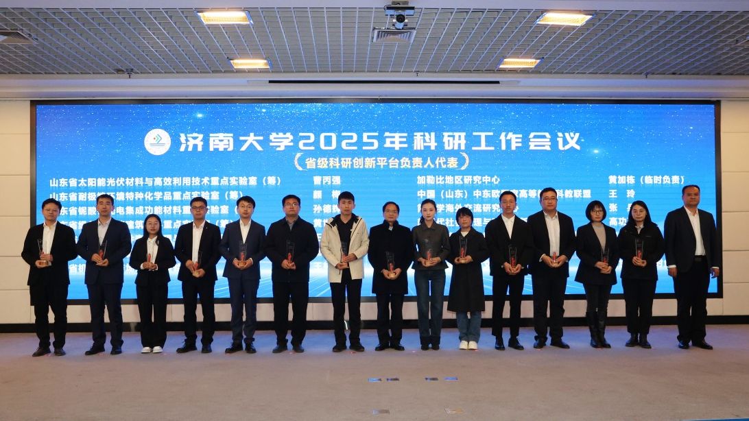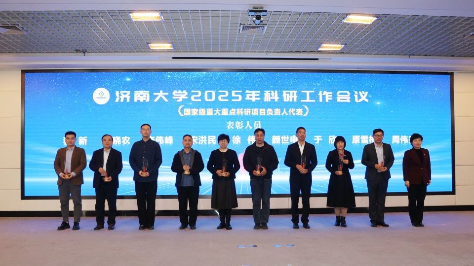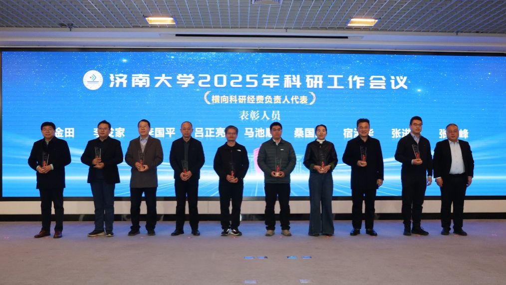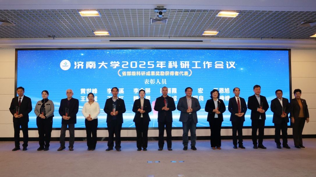 科研工作會(huì)議由黨委常委、副校長(zhǎng)黃加棟主持,劉春華作了題為《科學(xué)謀劃布局 聚力突破提升——奮力開創(chuàng)濟(jì)南大學(xué)科研事業(yè)新局面》的報(bào)告,系統(tǒng)總結(jié)了“十四五”以來學(xué)??蒲泄ぷ髟隗w制機(jī)制改革、平臺(tái)建設(shè)、社會(huì)服務(wù)、學(xué)術(shù)交流等方面取得的新成效;深入分析研判當(dāng)前面臨的新機(jī)遇、新挑戰(zhàn)與新要求,科學(xué)把握學(xué)校高質(zhì)量發(fā)展對(duì)科研工作的新要求,強(qiáng)調(diào)要正視問題,“刀刃向內(nèi)”,系統(tǒng)排查、深入剖析當(dāng)前科研工作中的不足和短板,聚焦癥結(jié)精準(zhǔn)發(fā)力,切實(shí)將短板補(bǔ)齊、弱項(xiàng)做強(qiáng);未來兩年要全面實(shí)施高層次科研提升工程,著力在體制機(jī)制、平臺(tái)能級(jí)、團(tuán)隊(duì)建設(shè)、成果質(zhì)量與社會(huì)服務(wù)等方面實(shí)現(xiàn)新突破,奮力開創(chuàng)科研工作新局面,為高水平大學(xué)建設(shè)作出新的更大貢獻(xiàn)。會(huì)上,材料科學(xué)與工程學(xué)院、政法學(xué)院作為優(yōu)秀科研單位代表,周偉家、宋洪民作為優(yōu)秀科研個(gè)人代表作了交流發(fā)言。學(xué)校領(lǐng)導(dǎo)為“十四五”以來承擔(dān)國(guó)家級(jí)重大重點(diǎn)項(xiàng)目的負(fù)責(zé)人、獲得省部級(jí)科研成果獎(jiǎng)勵(lì)的完成人等93位獲獎(jiǎng)代表頒發(fā)了獎(jiǎng)杯。