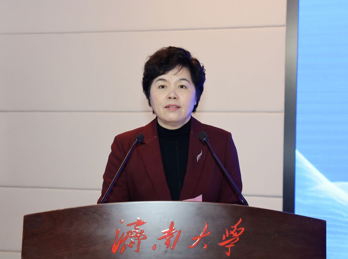 開幕式由黨委常委、副校長(zhǎng)黃加棟主持,王浩為大會(huì)致辭,劉春華致辭并作教育科技人才工作報(bào)告。王浩指出一體推進(jìn)教育科技人才發(fā)展,是黨中央為加快建設(shè)教育強(qiáng)國(guó)、科技強(qiáng)國(guó)、人才強(qiáng)國(guó)作出的頂層設(shè)計(jì)和戰(zhàn)略部署,他系統(tǒng)梳理了“十四五”期間,尤其是2025年山東高等教育在戰(zhàn)略人才力量集聚、科技自立自強(qiáng)等方面取得的突出成績(jī)。他高度肯定了濟(jì)南大學(xué)在統(tǒng)籌推進(jìn)教育、科技、人才一體化發(fā)展方面取得的成效,希望學(xué)校以此為契機(jī),緊緊錨定國(guó)家重大戰(zhàn)略需求,筑牢三位一體育人根基,進(jìn)一步優(yōu)化學(xué)科專業(yè)結(jié)構(gòu)、深化產(chǎn)學(xué)研協(xié)同創(chuàng)新、完善人才引育留用機(jī)制,打造人才集聚新高地,服務(wù)我省經(jīng)濟(jì)社會(huì)發(fā)展,為加快社會(huì)主義現(xiàn)代化強(qiáng)省建設(shè)作出新的貢獻(xiàn)。劉春華在題為《堅(jiān)持系統(tǒng)謀劃 推動(dòng)一體發(fā)展——為中國(guó)式現(xiàn)代化貢獻(xiàn)濟(jì)大智慧與力量》的報(bào)告中系統(tǒng)闡述了學(xué)校推進(jìn)教育、科技、人才一體化發(fā)展的戰(zhàn)略布局與實(shí)踐成效。她強(qiáng)調(diào),三者協(xié)同是服務(wù)國(guó)家戰(zhàn)略、支撐區(qū)域發(fā)展、實(shí)現(xiàn)學(xué)?!皼_一流、進(jìn)百強(qiáng)”目標(biāo)的關(guān)鍵。學(xué)校通過加強(qiáng)頂層設(shè)計(jì)、優(yōu)化學(xué)科布局、創(chuàng)新體制機(jī)制,深化科教融合與產(chǎn)教協(xié)同,構(gòu)建起教育鏈、人才鏈與創(chuàng)新鏈、產(chǎn)業(yè)鏈深度融合的體系,在學(xué)科建設(shè)、科研突破與人才培養(yǎng)方面取得顯著成果。面向未來,學(xué)校將繼續(xù)凝聚共識(shí)、深化改革、強(qiáng)化協(xié)同,全面提升一體化發(fā)展效能,為教育強(qiáng)國(guó)、科技強(qiáng)國(guó)、人才強(qiáng)國(guó)建設(shè)貢獻(xiàn)濟(jì)大力量。