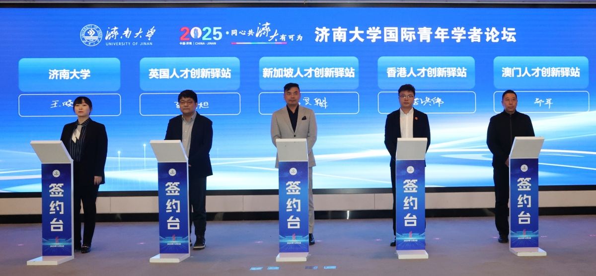 國(guó)際青年學(xué)者論壇由黨委常委、副校長(zhǎng)滕晉主持,李寧、耿慶坤分別致辭,劉春華作學(xué)校人才政策專題宣講。李寧、耿慶坤對(duì)論壇的舉辦表示祝賀,二人先后系統(tǒng)介紹了山東省、濟(jì)南市在人才引進(jìn)、培養(yǎng)激勵(lì)、服務(wù)保障等方面的支持舉措,并向海內(nèi)外青年英才發(fā)出誠(chéng)摯邀請(qǐng),歡迎大家扎根齊魯大地、筑夢(mèng)泉城濟(jì)南。劉春華以“底蘊(yùn)深厚、激勵(lì)創(chuàng)新、誠(chéng)意引才、通道多元”四組關(guān)鍵詞,詳細(xì)介紹了學(xué)校完整的人才培養(yǎng)體系、雄厚的科研實(shí)力、富有競(jìng)爭(zhēng)力的激勵(lì)機(jī)制以及多元化的發(fā)展通道與保障措施,全面展現(xiàn)了學(xué)校的辦學(xué)實(shí)力與引才誠(chéng)意,她強(qiáng)調(diào)學(xué)校將竭力打造最優(yōu)發(fā)展平臺(tái)、提供最強(qiáng)政策支撐、營(yíng)造最佳干事生態(tài),為青年學(xué)者營(yíng)造安心工作、舒心生活、順心科研的良好環(huán)境,實(shí)現(xiàn)人才成長(zhǎng)與學(xué)校發(fā)展的同頻共振、雙向奔赴。學(xué)校高層次人才代表化學(xué)化工學(xué)院王冠教授結(jié)合自身成長(zhǎng)經(jīng)歷,分享了在省市及學(xué)校政策支持下的科研探索與發(fā)展體會(huì)。濟(jì)南磐升生物技術(shù)有限公司副總經(jīng)理王軍作為企業(yè)代表,介紹了公司與濟(jì)南大學(xué)在人才共引共育、博士后聯(lián)合培養(yǎng)、產(chǎn)教融合、科研合作等方面的深入實(shí)踐與豐碩成果。論壇現(xiàn)場(chǎng)還舉行了“濟(jì)南大學(xué)海(境)外人才創(chuàng)新驛站”簽約儀式。