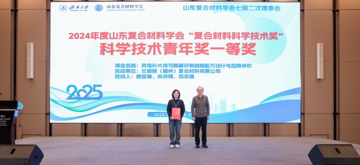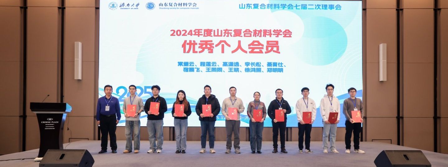 會議現場公布了山東復合材料學會2024年度學會優(yōu)秀個人會員、優(yōu)秀會員單位、優(yōu)秀青年科技工作者、“復合材料科學技術獎”科學技術青年獎、科技進步獎等多個獎項名單。學會副理事長、山東格瑞德集團風電公司總經理呂玉清,學會副理事長、中國石油大學材料學院副院長魯效慶,學會副理事長、威海光威復合材料股份有限公司總工程師林鳳森,學會副理事長、山東鑫捷瑞復合材料科技有限公司總經理趙成波,學會副理事長、聊城大學材料學院院長滕謀勇,學會副理事長、北玻院(滕州)復合材料有限公司董事長張為軍和學會副理事長、山東大學教授朱波分別為獲獎單位和個人頒獎并合影留念。
