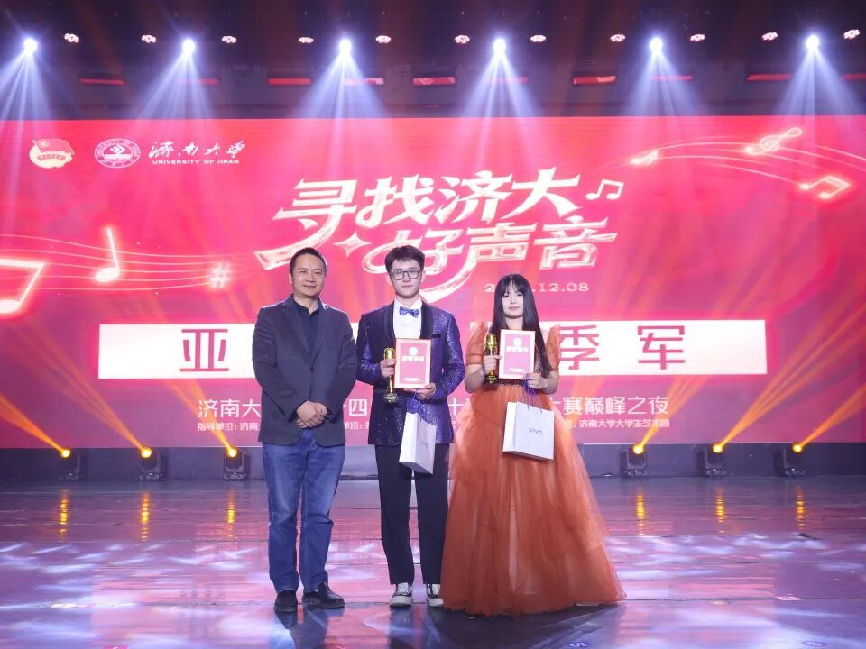 經(jīng)過激烈比拼,SQA張昕智獲冠軍,商學院路沛霖獲亞軍,音樂學院蘇詠琪獲季軍,文學院邱月泉、生物科學與技術(shù)學院李若瑄、生物科學與技術(shù)學院劉立雯、機械工程學院任建東、水利與環(huán)境學院張樂、數(shù)學科學學院黃鳴鶴、物理科學與技術(shù)學院伊姍共同獲得濟南大學第二十四屆校園“十佳歌手”稱號,路沛霖、蘇詠琪、伊姍、張昕智、邱月泉獲“最佳人氣歌手”稱號。
